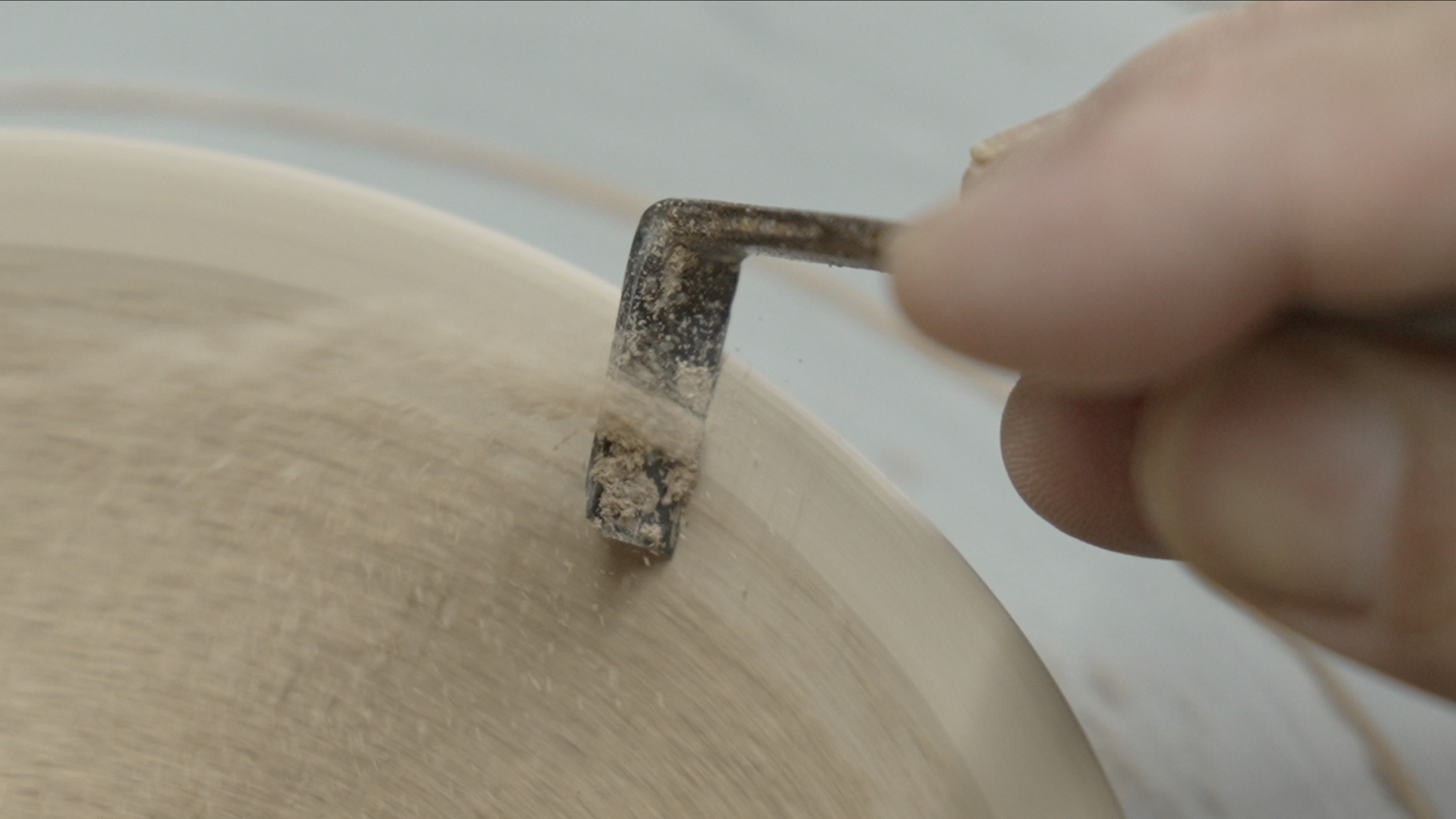 Centuries ago, a tradition developed in China of fashioning celadon ware into musical instruments. It involves shaving the celadon – a process requiring very delicate craftsmanship. The minutest details impact the quality of the sound, from the curvature of a bowl's edge to the overall thickness. The tools work effortlessly, like cutting through butter!