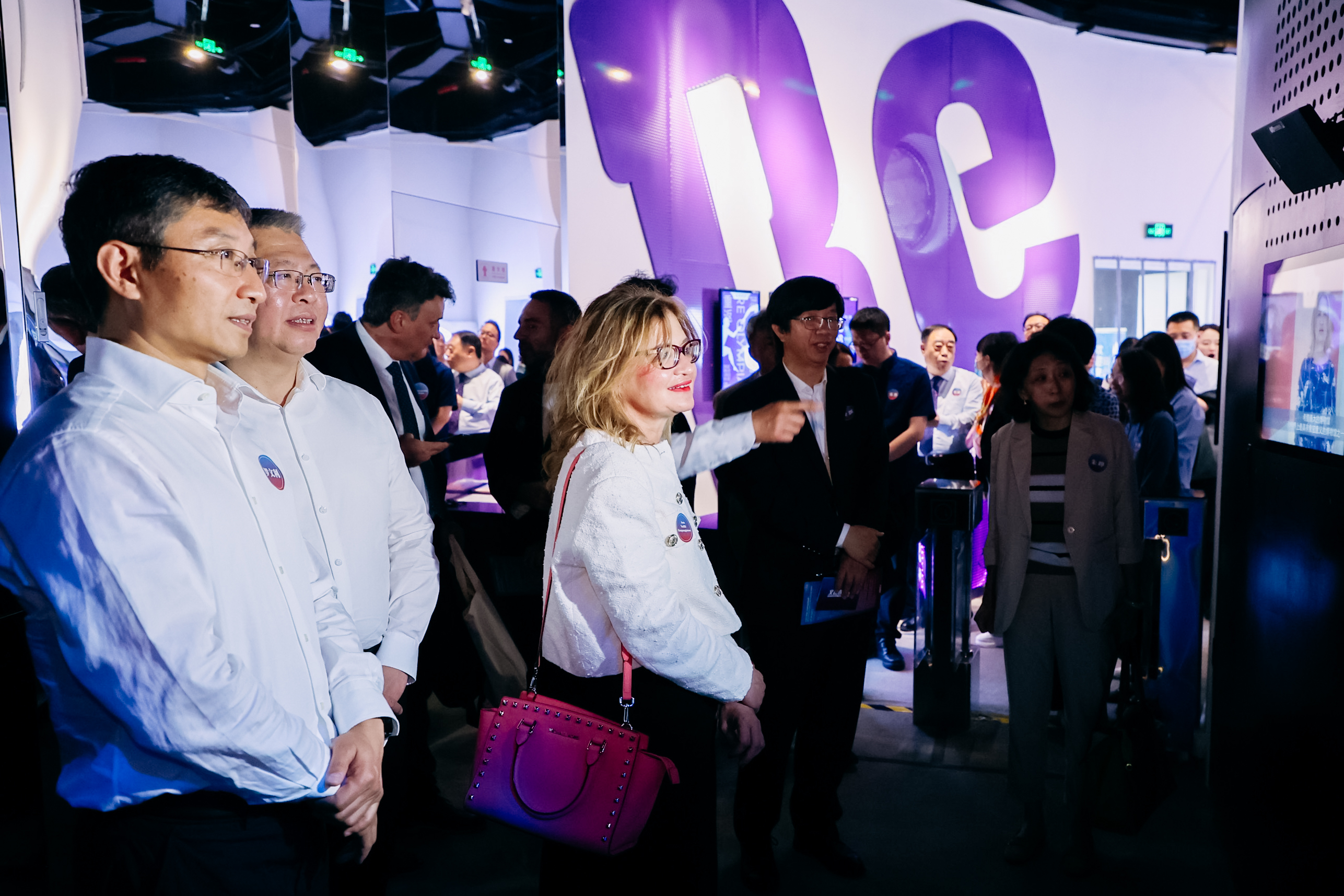 Anna Vasiliki Karapanagiotou (center), director of the National Archaeological Museum of Athens, along with other guests of the culture salon, watch the virtual display "Parallel Space: Meet the Terracotta Warriors in Greece." in Beijing on May 24, 2023. /Photo provided to CGTN