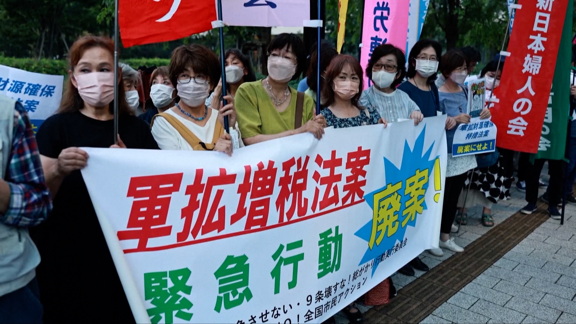 Many Japanese, including Diet members, gathered near the National Diet in Tokyo on Tuesday to demonstrate against Japan's military expansion and NATO's plan to open a liaison office in this country.