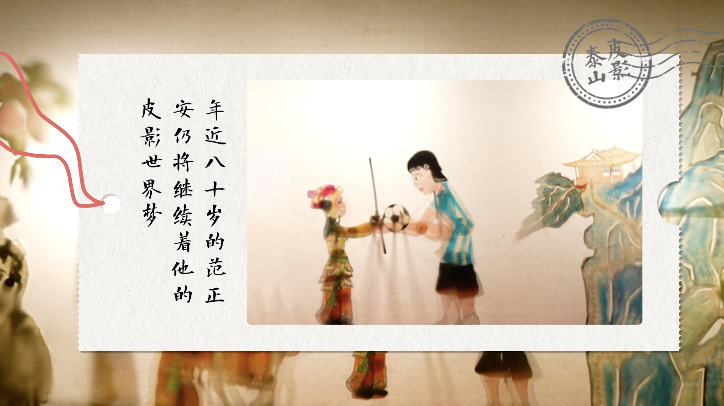 Mount Taishan shadow puppet master Fan Zheng'an can put on a show all by himself. He can operate 20 puppets and play eight instruments with his feet during his performances! To spread shadow puppetry to the rest of the world, the 78-year-old has traveled to 23 countries and even learned English. When the Argentinian national football team came to Beijing for a match, he rehearsed a special shadow football game and made a Messi shadow puppet!