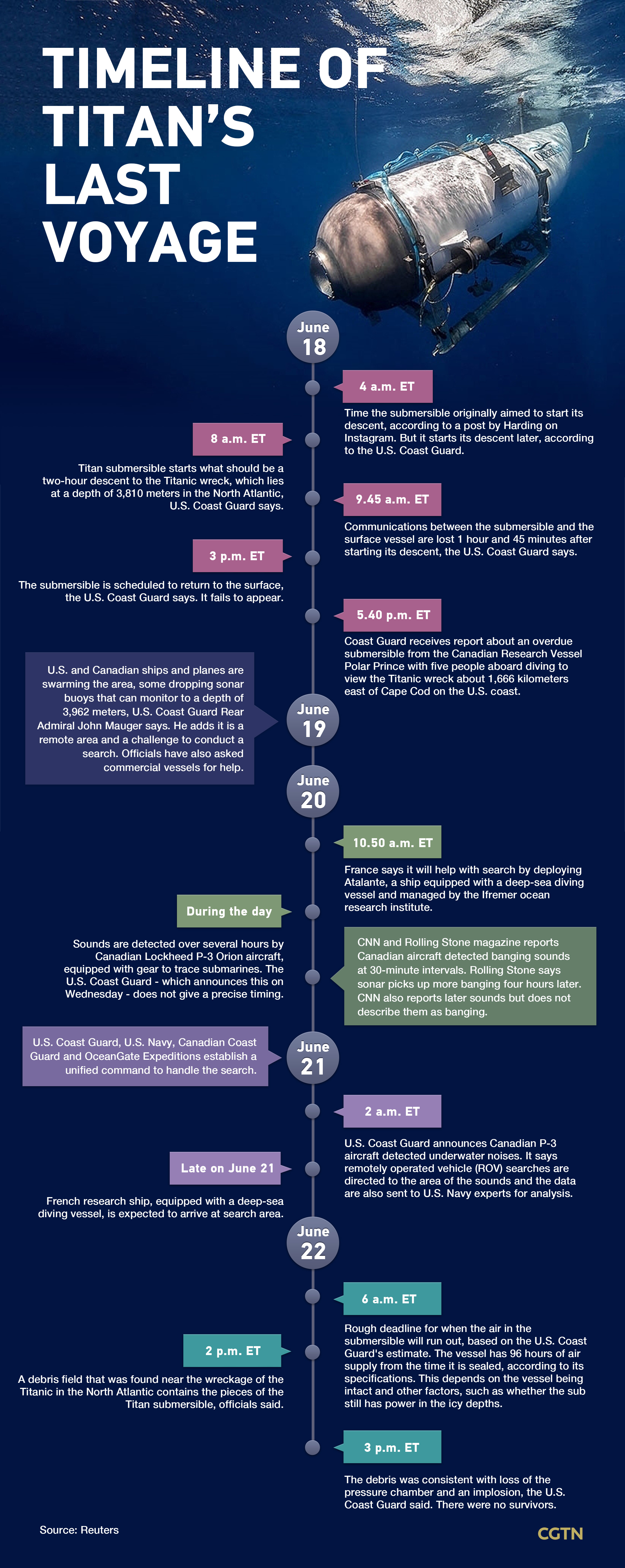 Here is a timeline of the events beginning from the submersible's descent to the discovery of its wreckage.