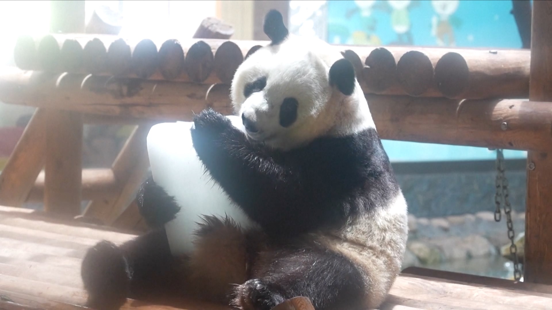 At the Xi'an Qinling Wildlife Park, zookeepers help animals beat the summer heat. The city has been suffering from persistently high temperatures in recent days. The zookeepers have been monitoring twin giant pandas Qin Xiu and Qin Mei. When temperatures climb up during the day, they bring them indoors. Their room is air-conditioned, and the bears also get frozen treats. Their special fruit platter is served on large ice blocks, which help the bears cool down.