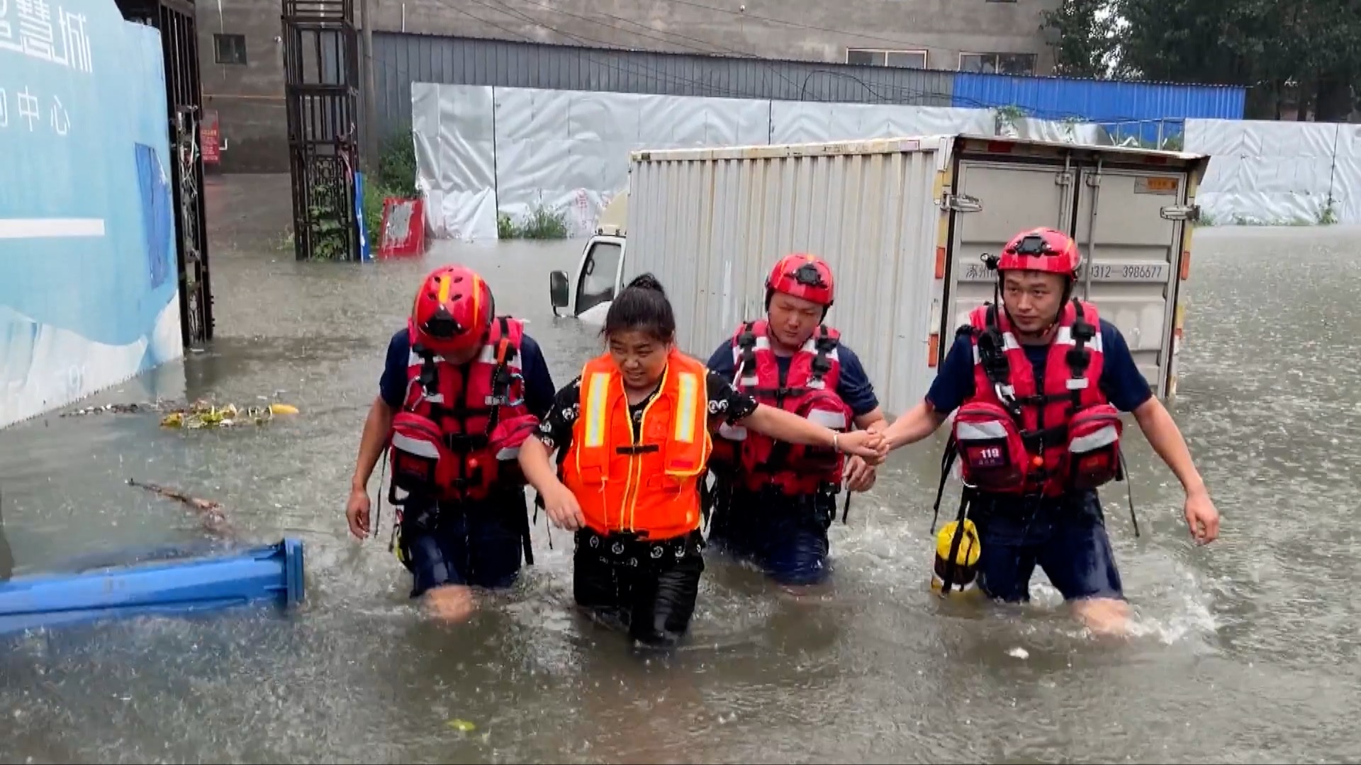 Pouring rain in China's Hebei Province and Shaanxi Province trapped residents last weekend. Local firefighters took operations to rescue people in cities and villages.