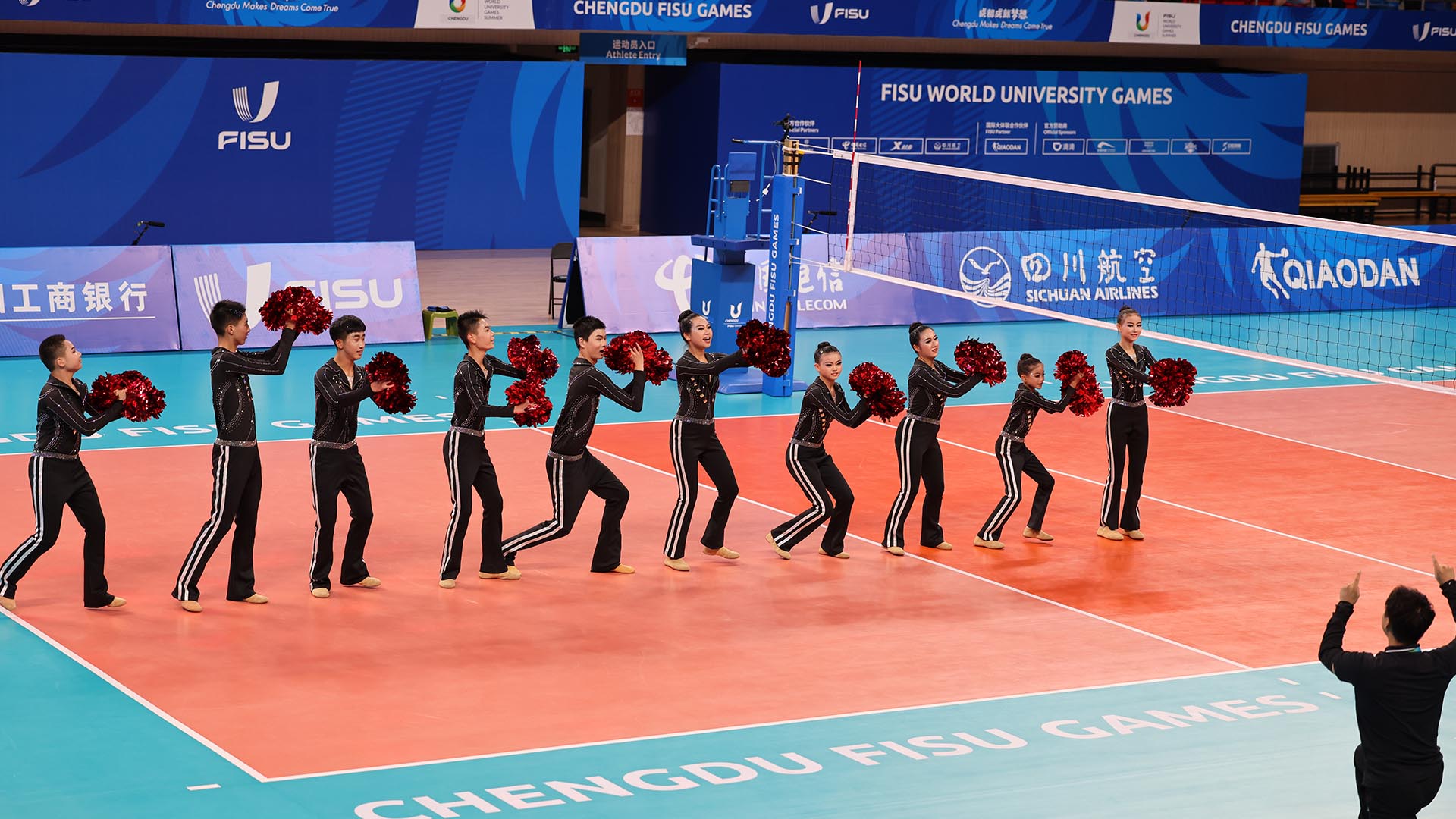 A cheerleading squad consisting of hearing-impaired students has won applause at the Chengdu Universiade. Under the guidance of their coach, the team performed at the finals of several games.