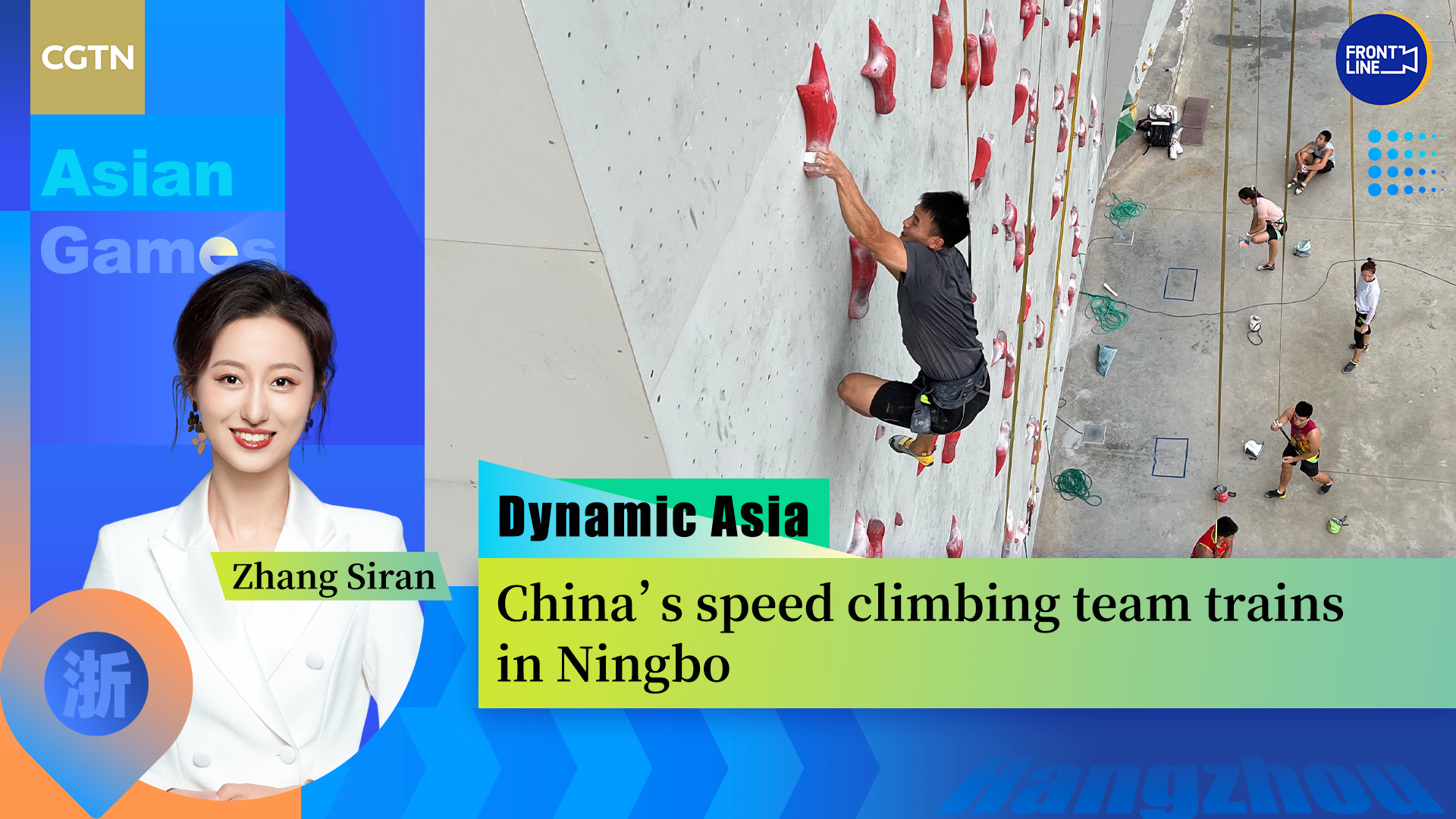 With less than a month to go before the Hangzhou Asian Games, China's speed climbing team has begun training for the big event. CGTN's Zhang Siran spoke to athletes Long Jinbao and Deng Lijuan at the training base in Ningbo.