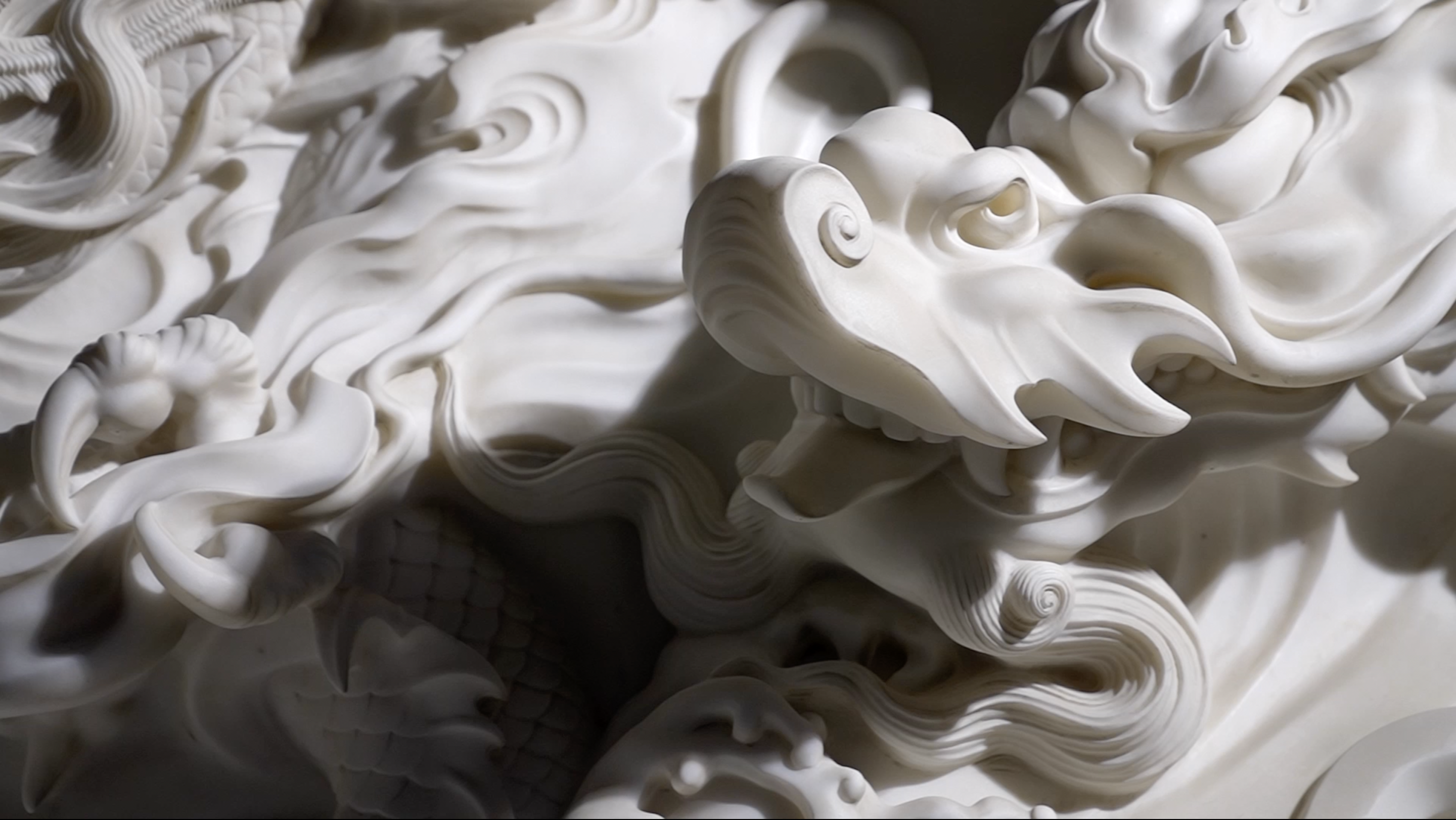 A wide range of Hui'an stone-carving techniques were employed in the carving of these dragons into a giant slab of stone. Much of the carving involved the high-relief technique. Circular engravings were applied to the dragons' heads. The claws were created using a virtual openwork technique.