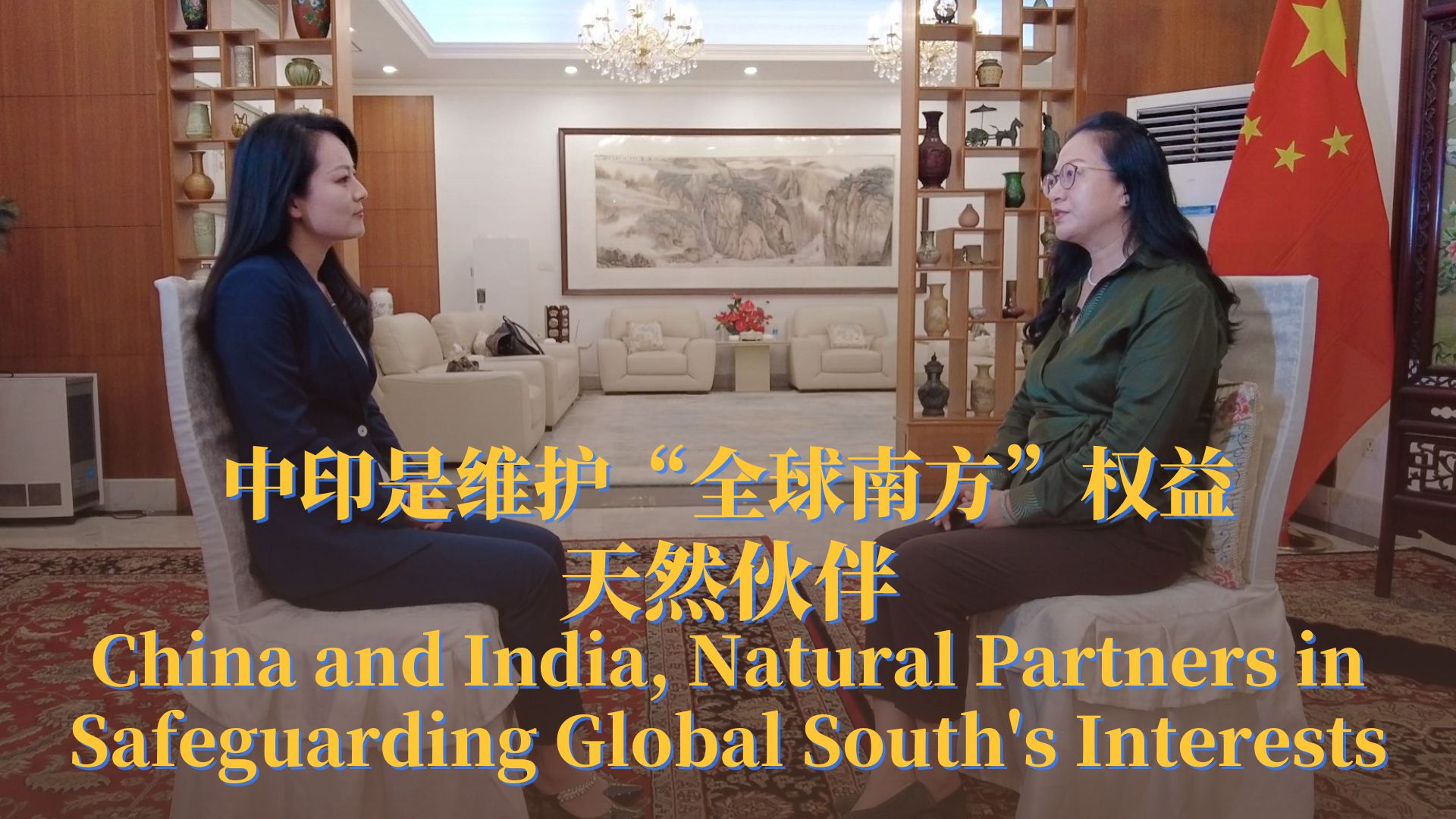 "China and India, as ancient civilizations and the two largest developing countries globally, are both members of BRICS and the Shanghai Cooperation Organization. We are natural partners in safeguarding the rights and interests of the Global South," Ma Jia, the chargé d'affaires ad interim at the Chinese Embassy in India, said during an interview with CGTN reporter Dong Xue.
