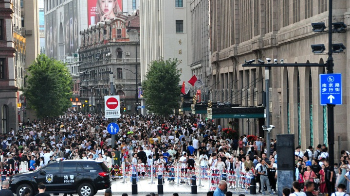 Crowds flock to the pedestrian street on Nanjing Road in Shanghai, east China, August 27, 2023. /CFP