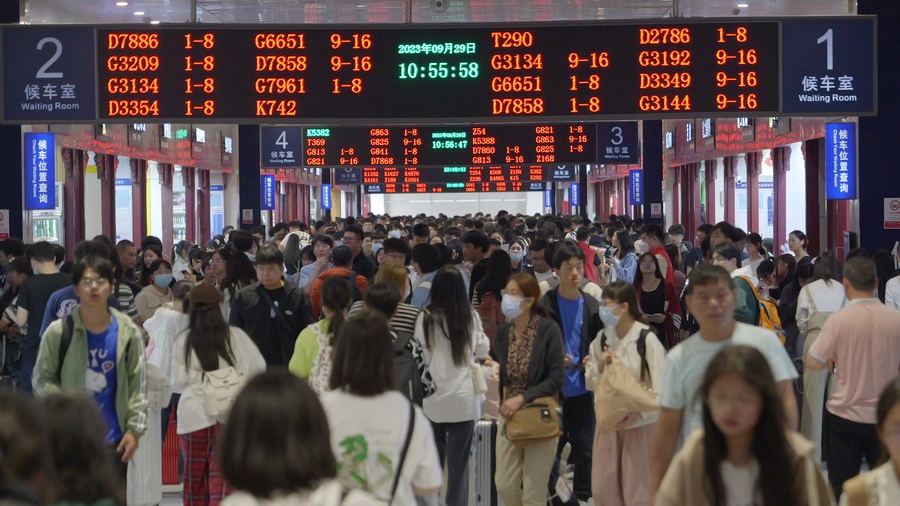 Passengers at Zhengzhou Railway Station in Zhengzhou, central China's Henan Province, September 29, 2023. /Xinhua