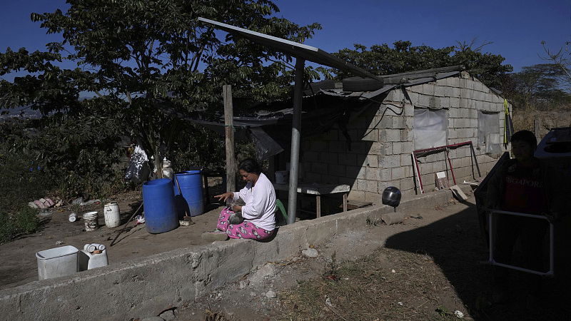 A woman sits outside of her house which is not equipped with sustainable basic services, in Quito, Ecuador, September 7, 2023. /CFP