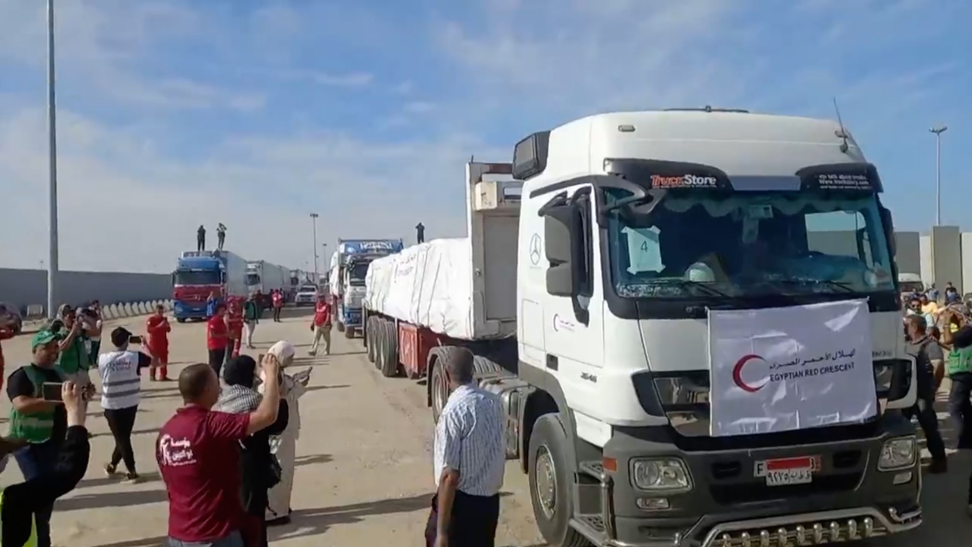 Twenty trucks loaded with humanitarian aid of food and medicine entered Gaza on Saturday through the Rafah crossing, the only border crossing between the besieged coastal enclave and Egypt, after a two-week blockade. The UN said at least 100 trucks daily are needed to cover urgent needs, and 20 trucks are not enough. The Hamas-run government media office in Gaza said it's important to establish a safe corridor that works around the clock to provide humanitarian aid. After the trucks passed, the crossing was closed again. At present, more than 200 trucks carrying a total of about 3,000 tonnes of aid have been parked near the Rafah crossing for several days.