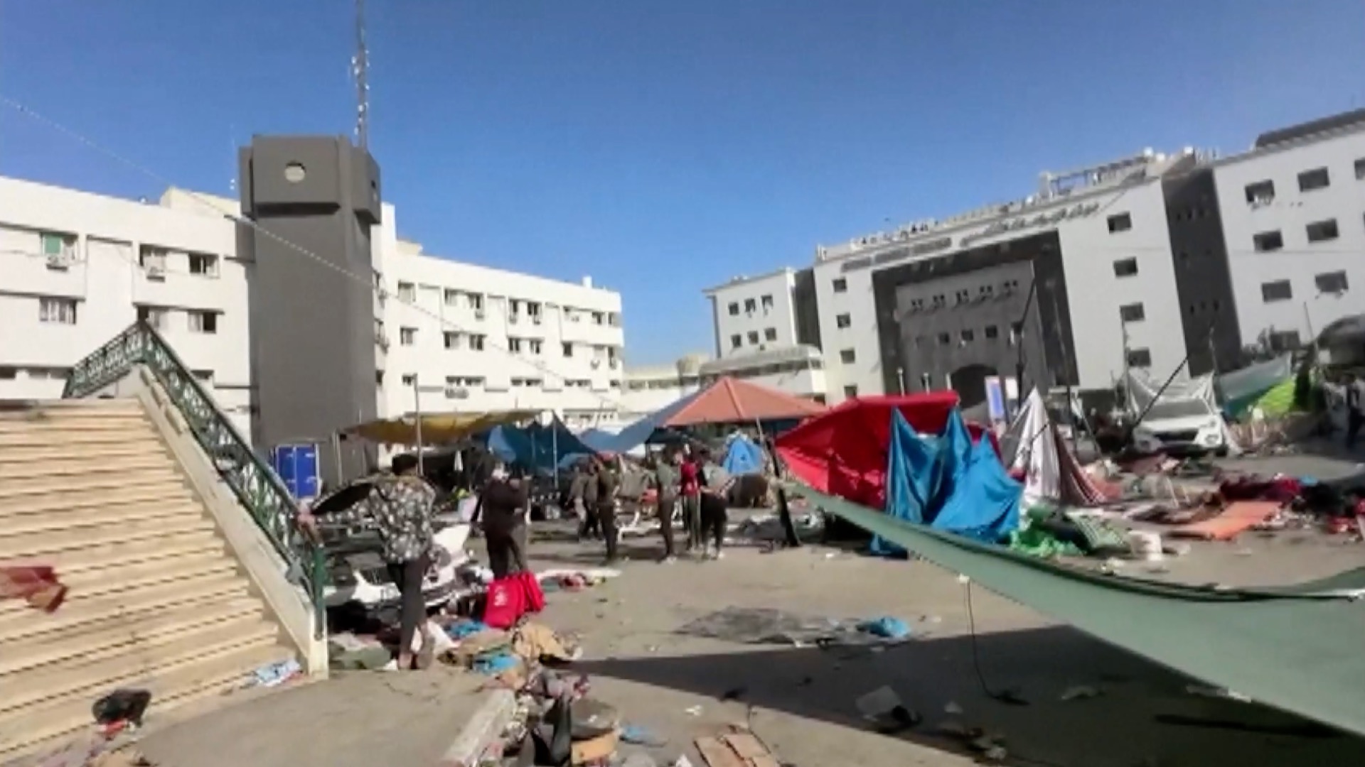 Al-Shifa Hospital, the largest hospital in the Gaza Strip, has been repeatedly raided by Israeli forces, which claim a Hamas military headquarters is concealed below the medical compound. Hamas and the health ministry in Gaza have both denied the accusation. Footage shot by a CMG reporter showed buildings destroyed and people displaced by Israel's operations. Only a handful of staff members remain in the hospital, while displaced people still live in temporary tents in the medical compound and bodies were seen in the streets.
