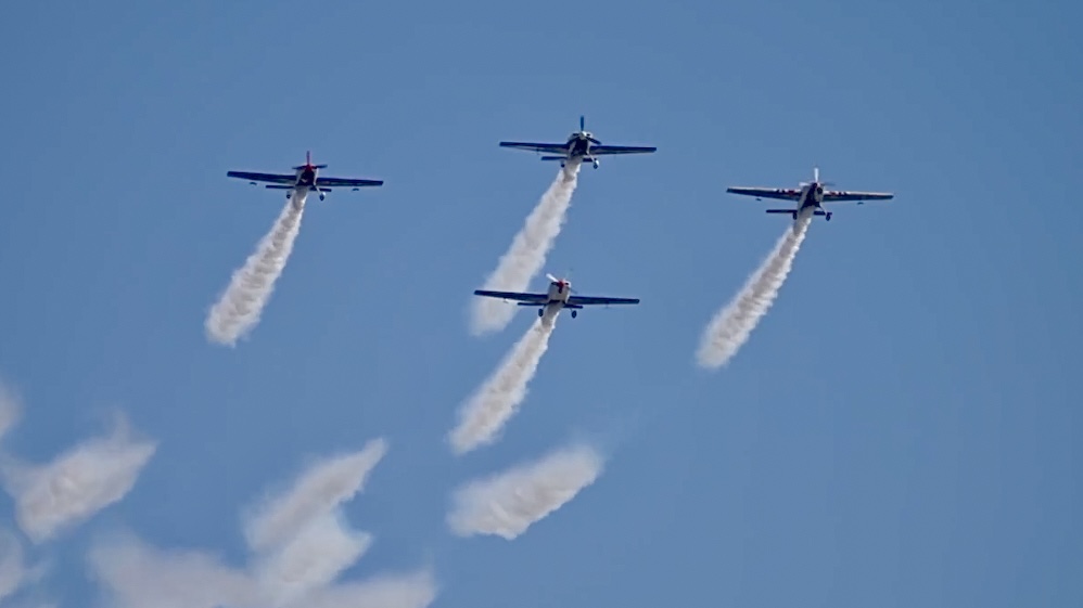 Spectacular aerial performances graced the skies on Saturday, presented by aerobatic teams from China and abroad at the 2023 AERO Asia Show in Zhuhai City, south China's Guangdong Province.