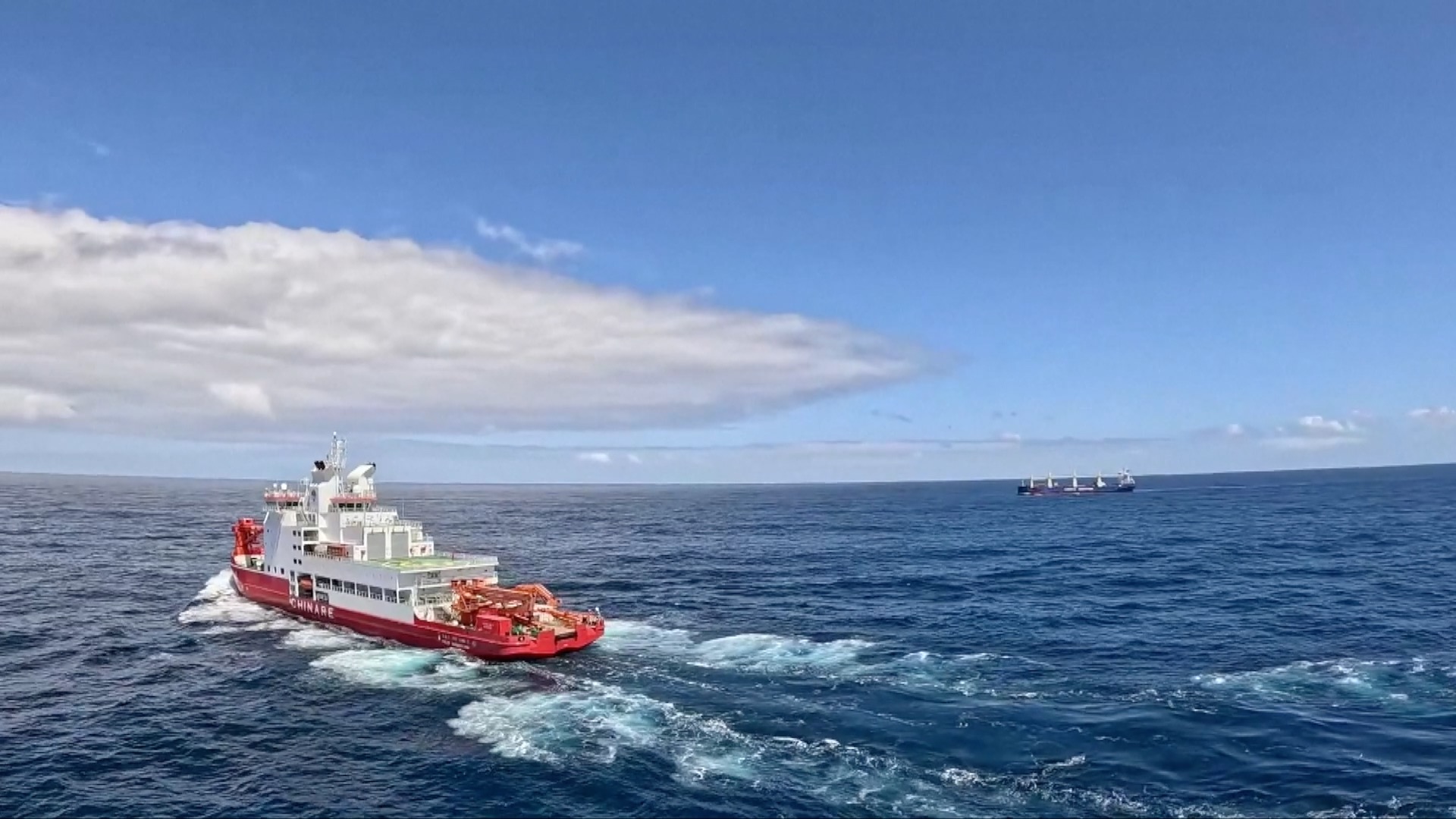 China's research icebreaker Xuelong 2 rendezvoused with supply vessel Tian Hui in waters off the South Island of New Zealand, as the two ships started to pass through the westerlies on November 25 en route to Antarctica.