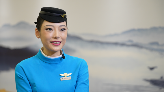 Su Chia-yu serves as a cabin purser at Xiamen Airlines. Originally from China's Taiwan region, she says that it was on the Chinese mainland that she fulfilled her dream of flying. Su says they aspire to shuttle passengers with care and take more people to explore the world.
