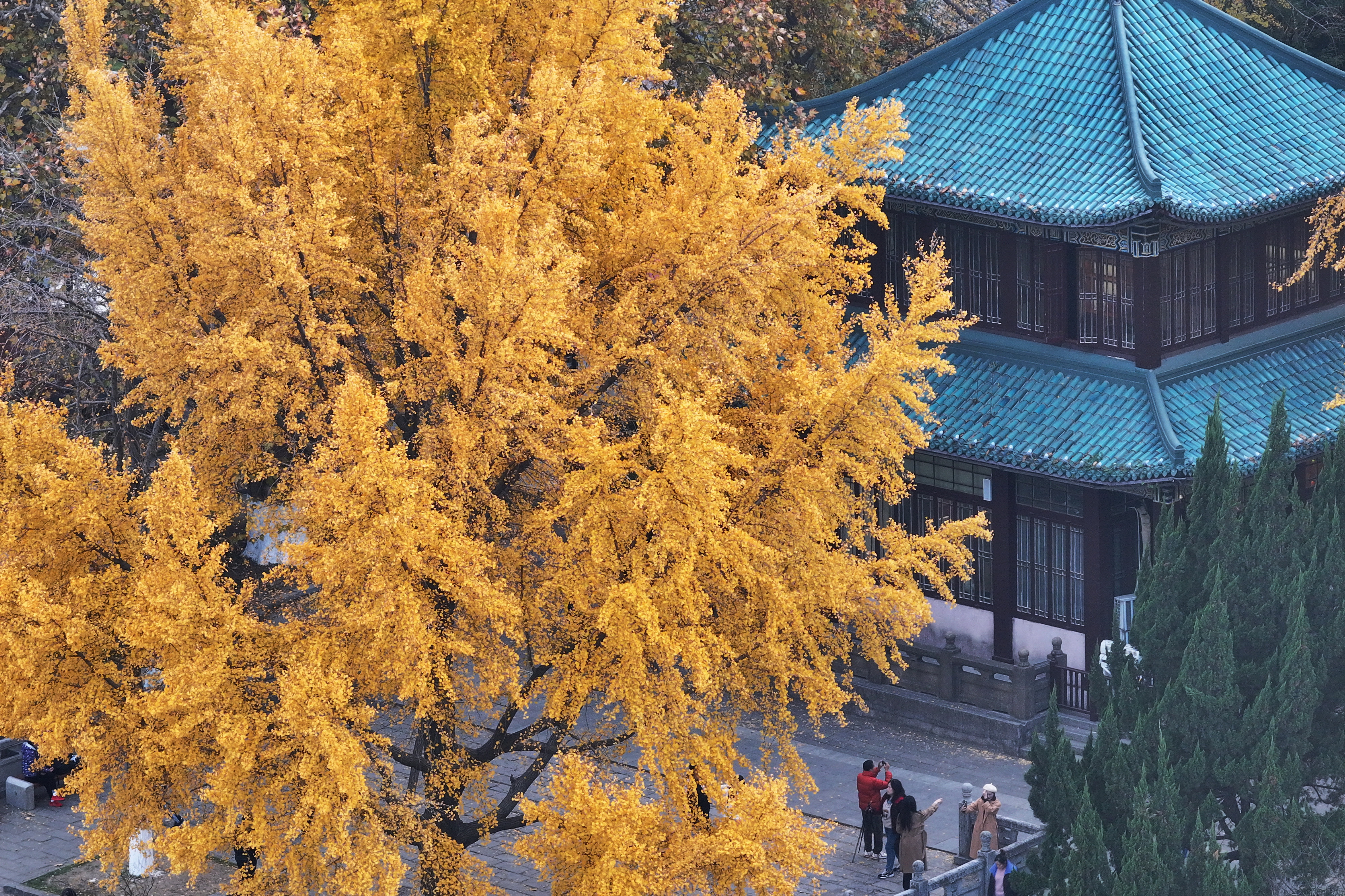 Bright golden ginkgo leaves are adorning the renowned Xuanwu Lake this winter, creating a picturesque scene in Nanjing City, Jiangsu Province. Situated near Nanjing Railway Station, Xuanwu Lake Park is home to many temples, pagodas, pavilions and gardens, as well as a diverse variety of flora and fauna, presenting captivating scenery all year around. Once an imperial lake garden, the area is now a popular city park in the downtown area.