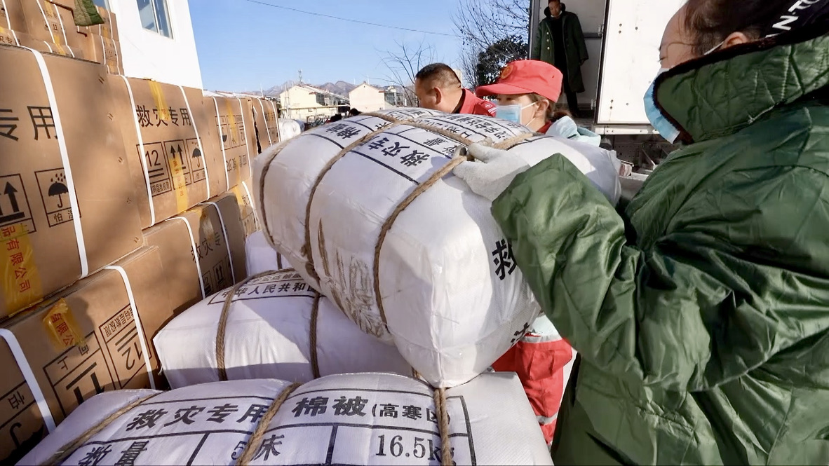 Emergency supplies have arrived to Yuanqu County in north China's Shanxi Province on December 16 following a power outage. The supplies included more than 10,000 quilts and thermal suits, which were distributed to local residents. The power outage was caused by heavy snowfall and extreme cold. A total of four power transmission lines broke down. One power transmission line has been repaired, and is now back in operation.