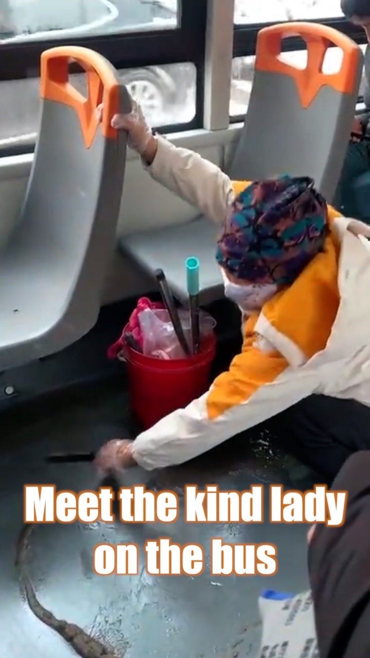 Due to a sweeping cold wave, heavy snow blanketed many parts of China and made an impact on people's daily life. Someone cleaned slippery snow on the bus. Who is she?