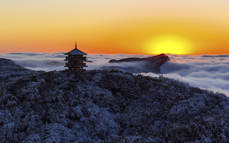 A sunrise is seen over Jinfo Mountain scenic spot in southwest China's Chongqing, December 20, 2023. /CFP