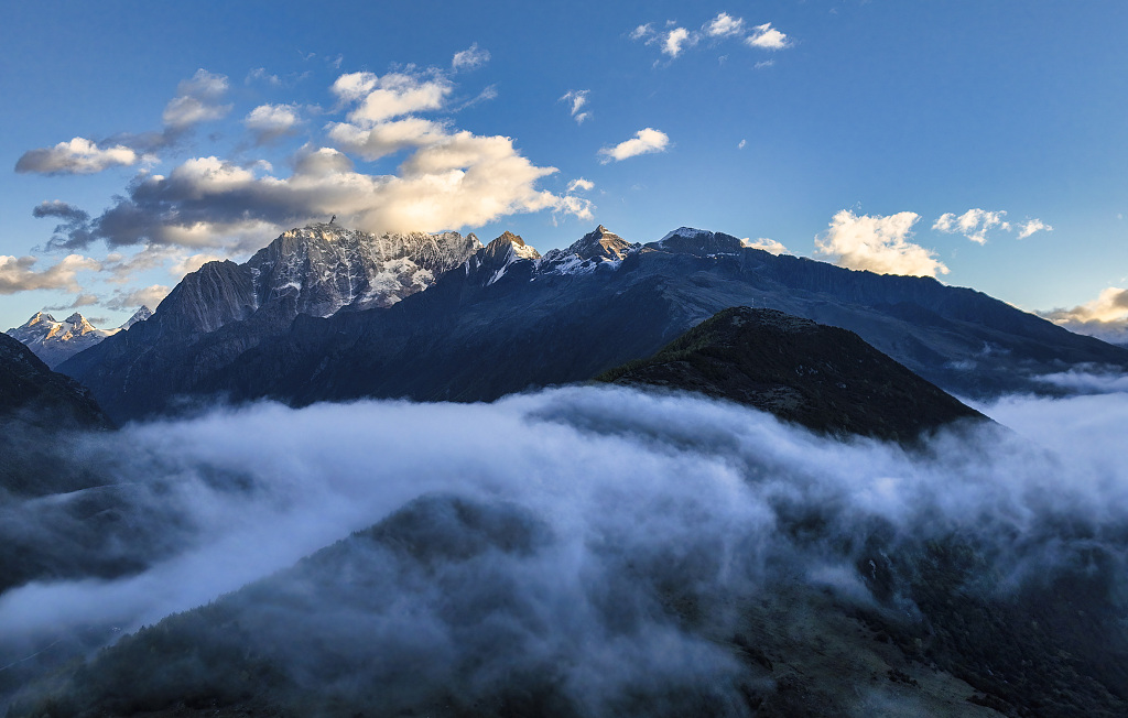 Mount Siguniang in Sichuan Province, China, is captured in golden sunshine on October 17, 2023. /CFP