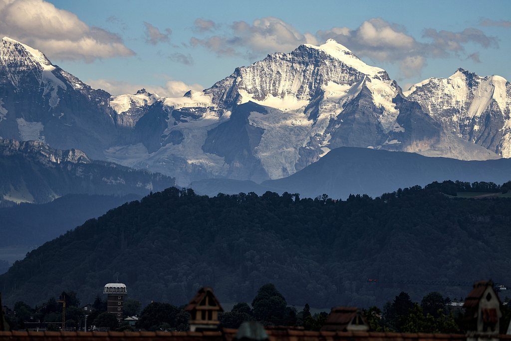 The peaks of the Bernese Orberland range (Swiss Alps) – the Eiger, Monch and Jungfrau – are seen from Bern, Switzerland on August 2, 2023. /CFP