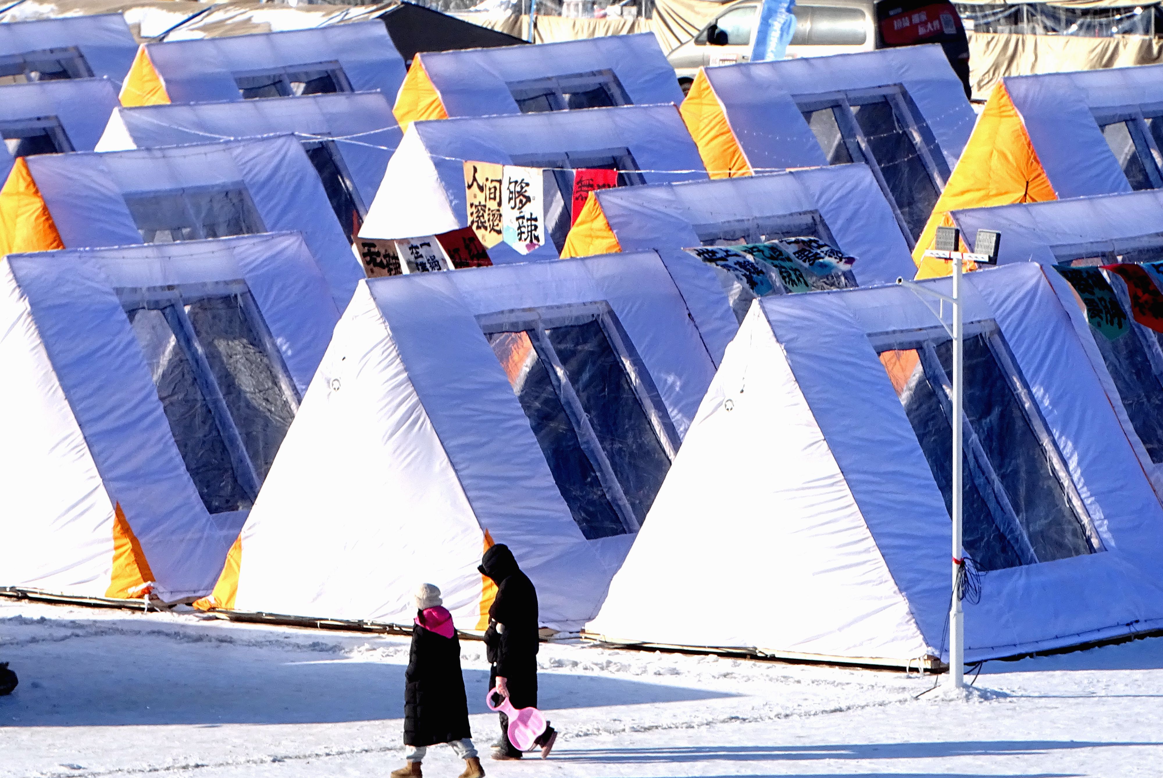 Dozens of tents are set up to cater to tourists at an amusement park in Harbin, Heilongjiang Province. /IC