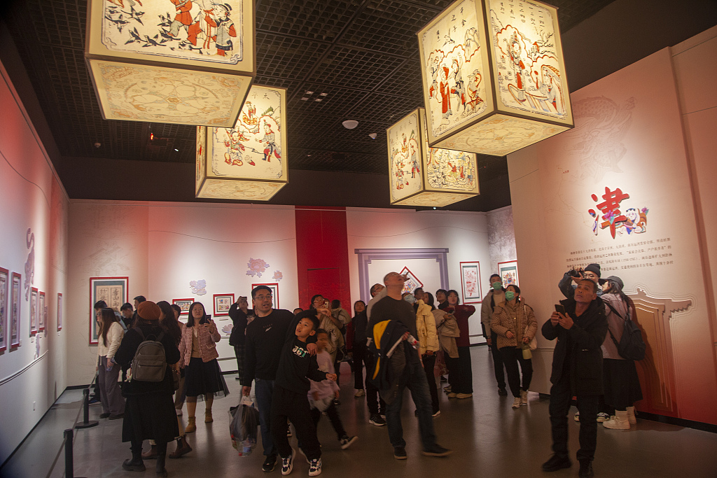 People enjoy the traditional New Year pictures at the Shandong Museum in Jinan, Shandong Province, February 15, 2024. /CFP