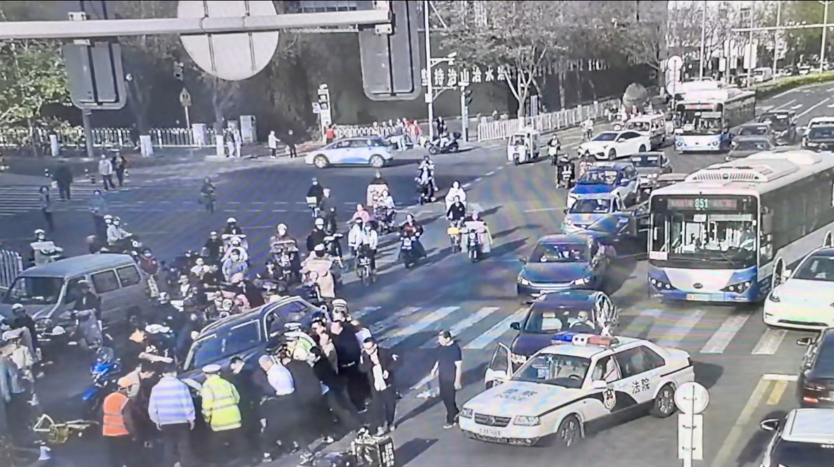 At around 5:40 pm on April 16, an SUV hit an electric bicycle rider at a crossroad in the capital city of Taiyuan, northern China's Shanxi Province. As the rider was pinned under the vehicle, the driver got off at once and tried to lift up the car all by himself. Nearby police officers rushed in to help, and called on passersby to lend them a hand.