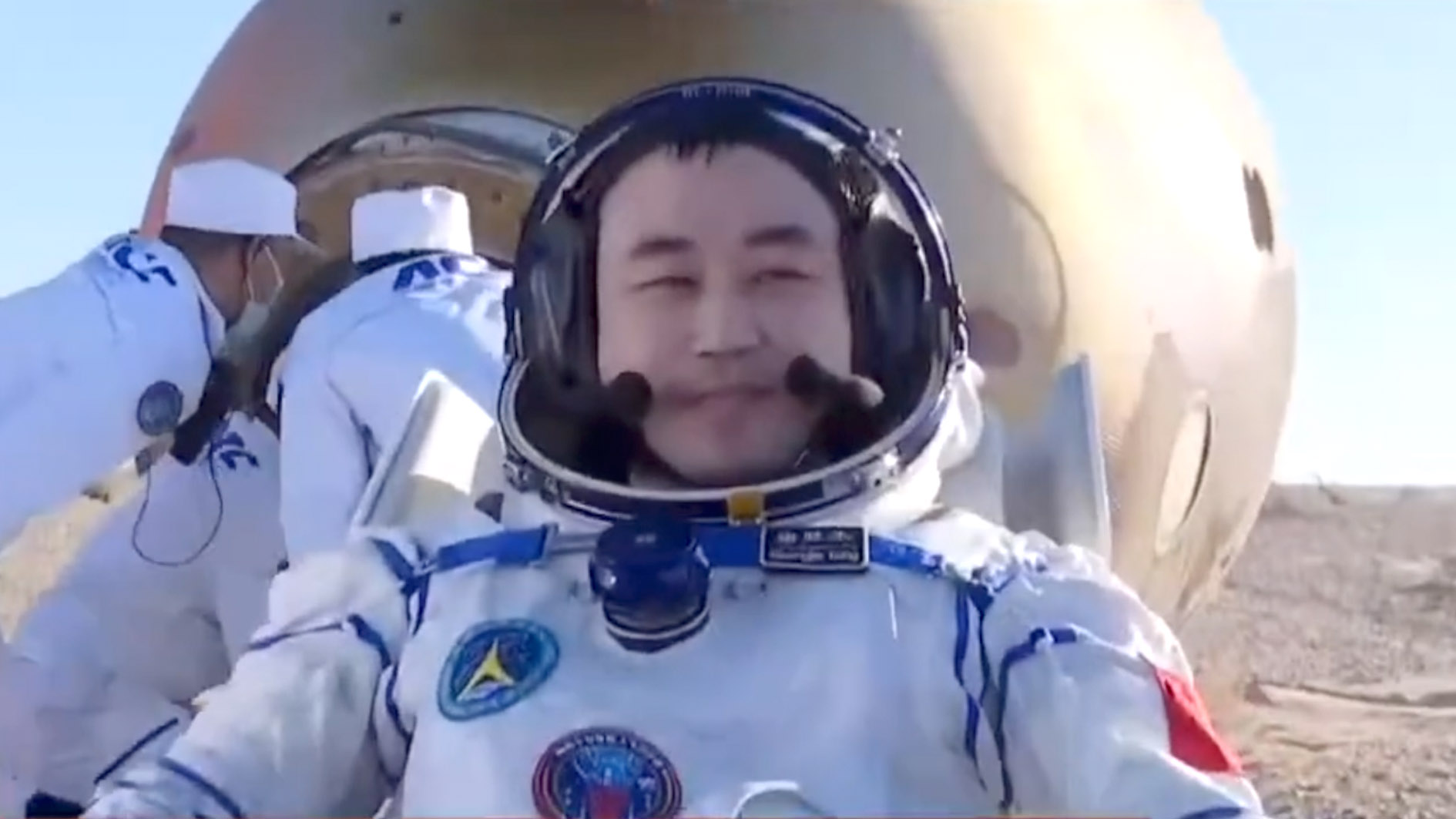 Shenzhou-17 manned mission astronaut Tang Shengjie has exited the return capsule that touched down at the Dongfeng landing site in north China's Inner Mongolia Autonomous Region on Tuesday.