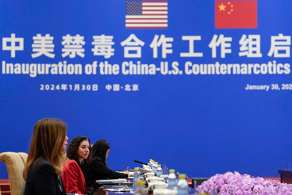 The inauguration of the China-U.S. Counternarcotics Working Group is held at the Diaoyutai State Guesthouse, Beijing, capital of China, January 30, 2024. /CFP