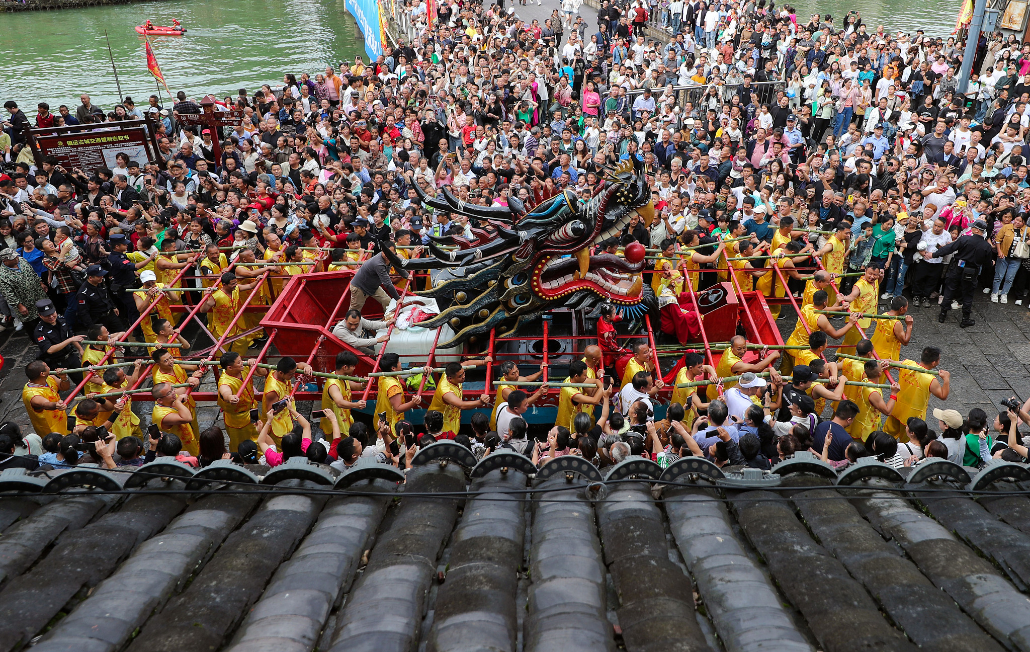 A performance featuring a traditional water wedding is staged at Shaoxing Rice Wine Town in Zhejiang Province on February 11, 2024. /CFP