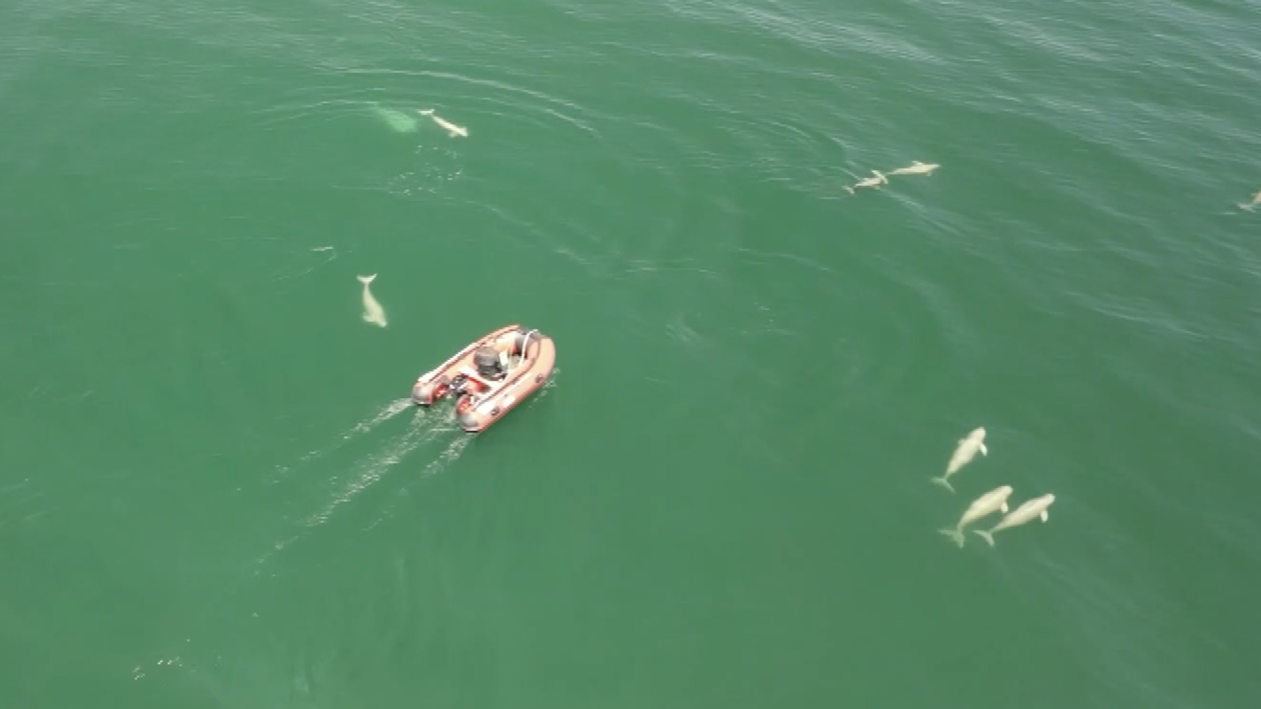 Over 10 East Asian finless porpoises were spotted near Guanglu Island Town in Dalian, northeastern China's Liaoning Province. These playful creatures, known as "smiling angels," were seen frolicking and following passing boats. They can communicate and navigate by sound. They are primarily found in the Bohai Sea, Yellow Sea and northern East China Sea.