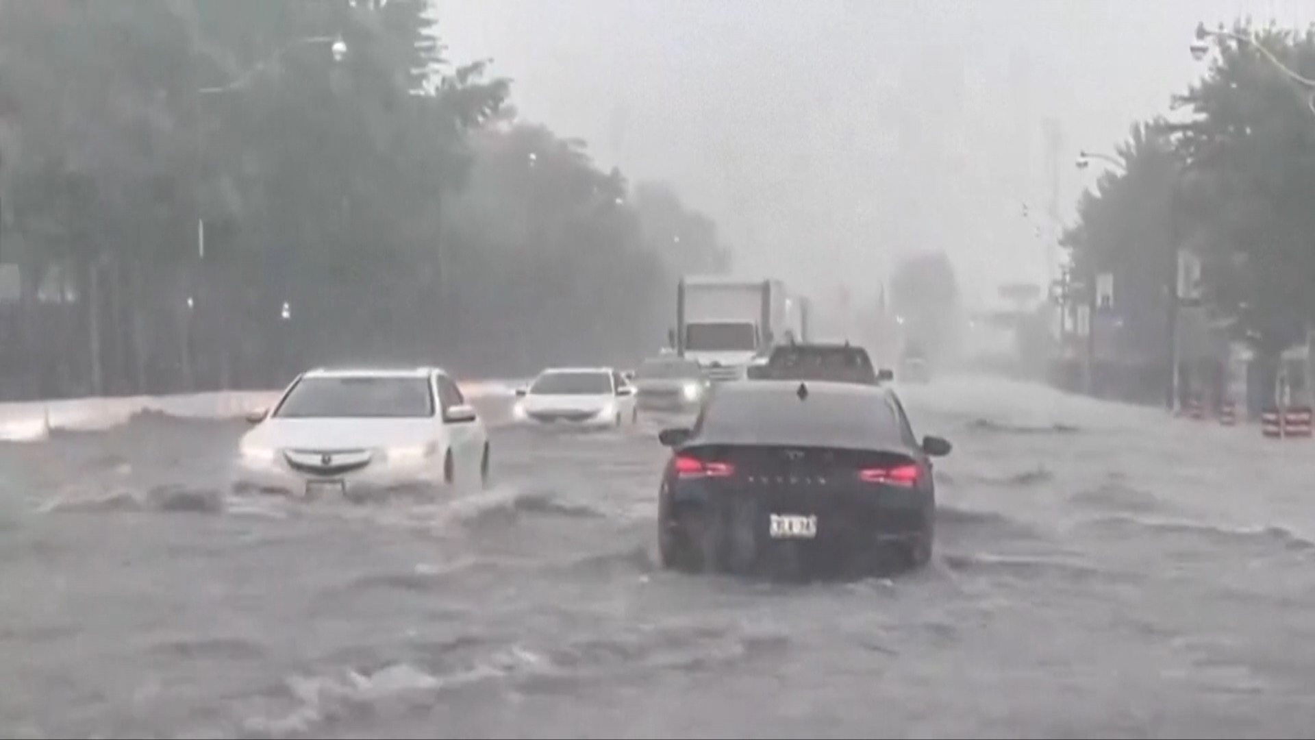 Toronto Fire Services said it rescued 14 people from flooding on the highway.