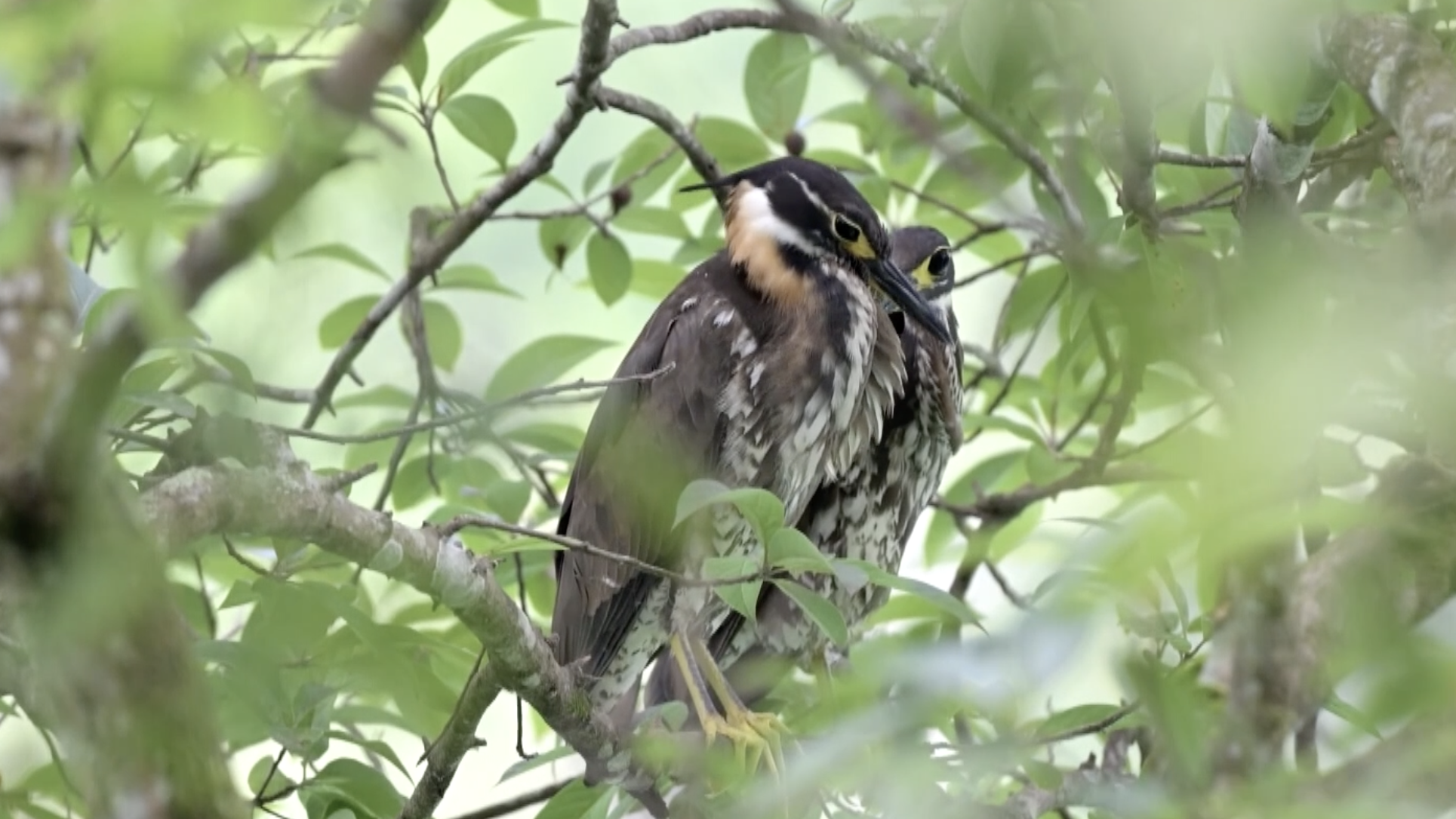 Four critically endangered white-eared night herons have been spotted in Tian'e County, south China's Guangxi Zhuang Autonomous Region. They are a family of two adults and two chicks. Only around 1,000 such birds remain worldwide. Known as the "world's most mysterious bird," white-eared night herons are elusive and prefer dense forests. Improved local ecology is attracting more rare wildlife.