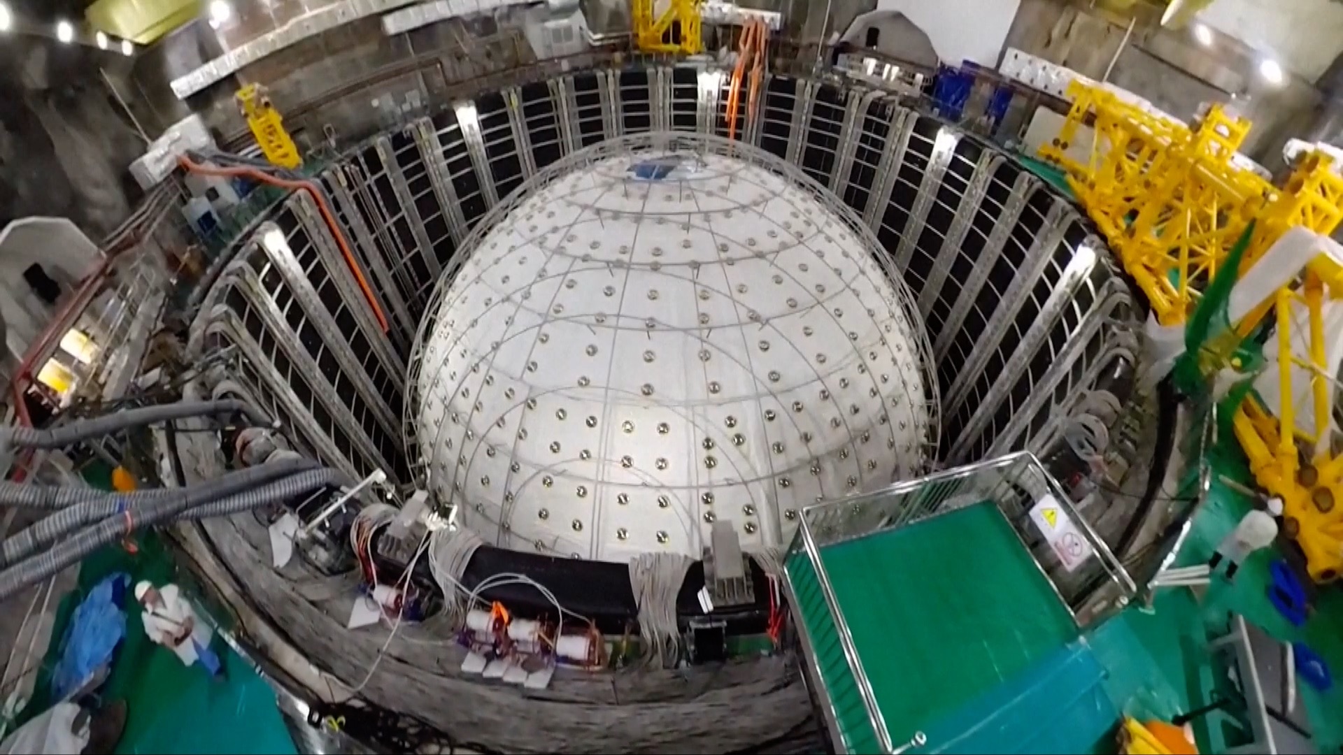 China has constructed the world's largest transparent spherical detector 700 meters underground to capture elusive neutrinos, often dubbed "ghost particles," boosting humanity's understanding of the universe. The 12-story-tall acrylic sphere with a diameter of 35.4 meters is the core of Jiangmen Underground Neutrino Observatory scientific facility. To construct this complex device, a team of scientists and engineers had to overcome a series of unprecedented technological challenges, excavating and building an underground cavern to accommodate the facility with its arched roof spanning 49.5 meters, setting a record in China.