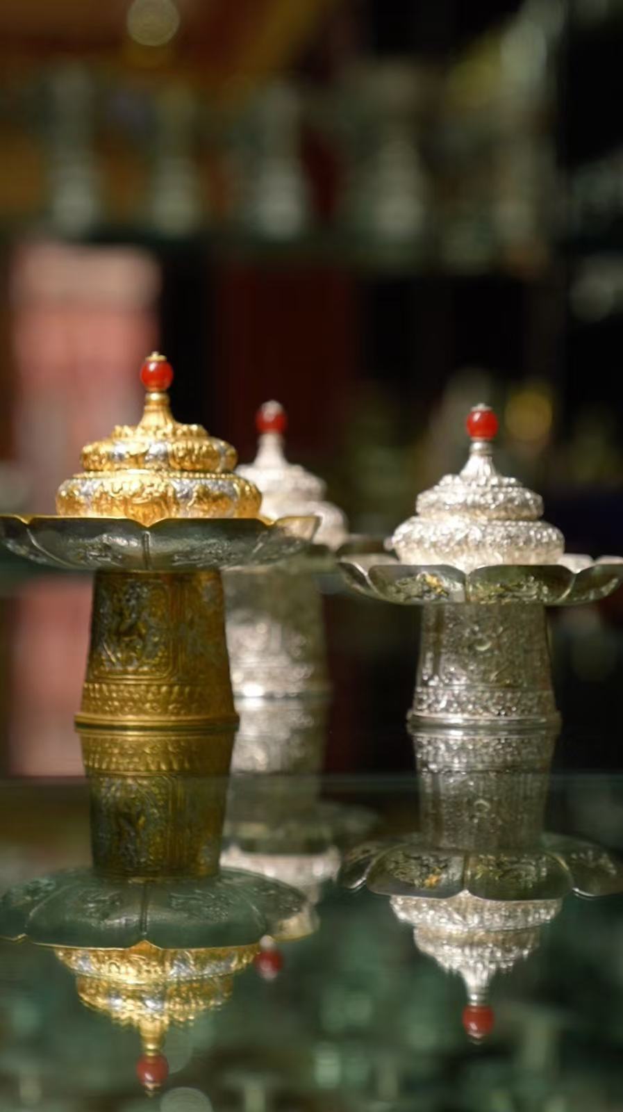 How does a little lump of silver become a beautiful work of art? The first step is to heat it. When the heat softens the silver, hammer it until it becomes a flat and thin piece of silver. Draw a circle around it and keep pounding the silver. It takes one to two weeks for each craftsman to complete a work.