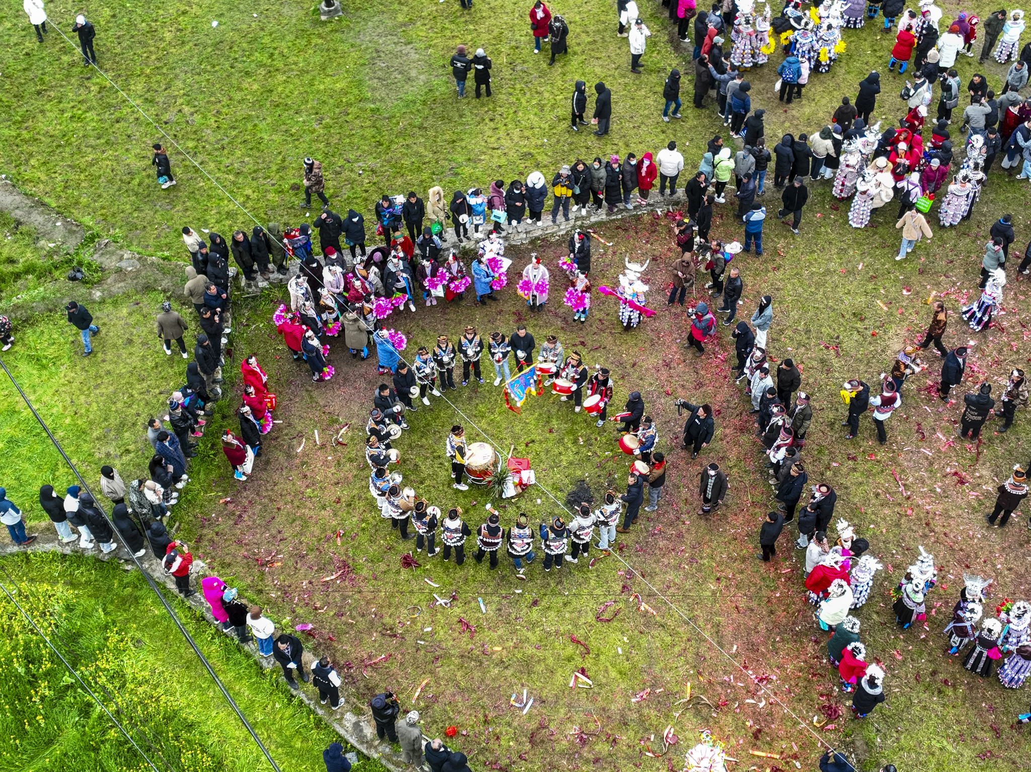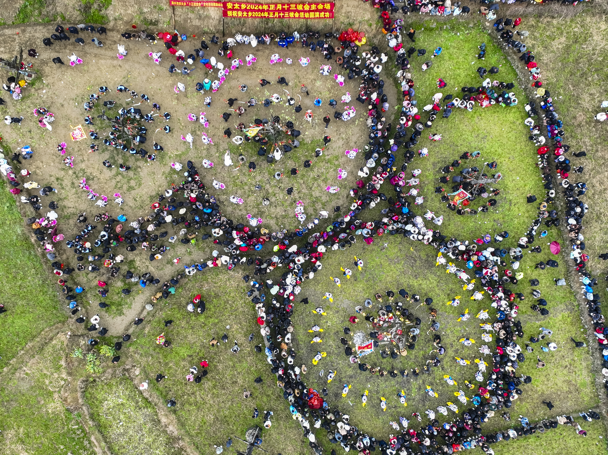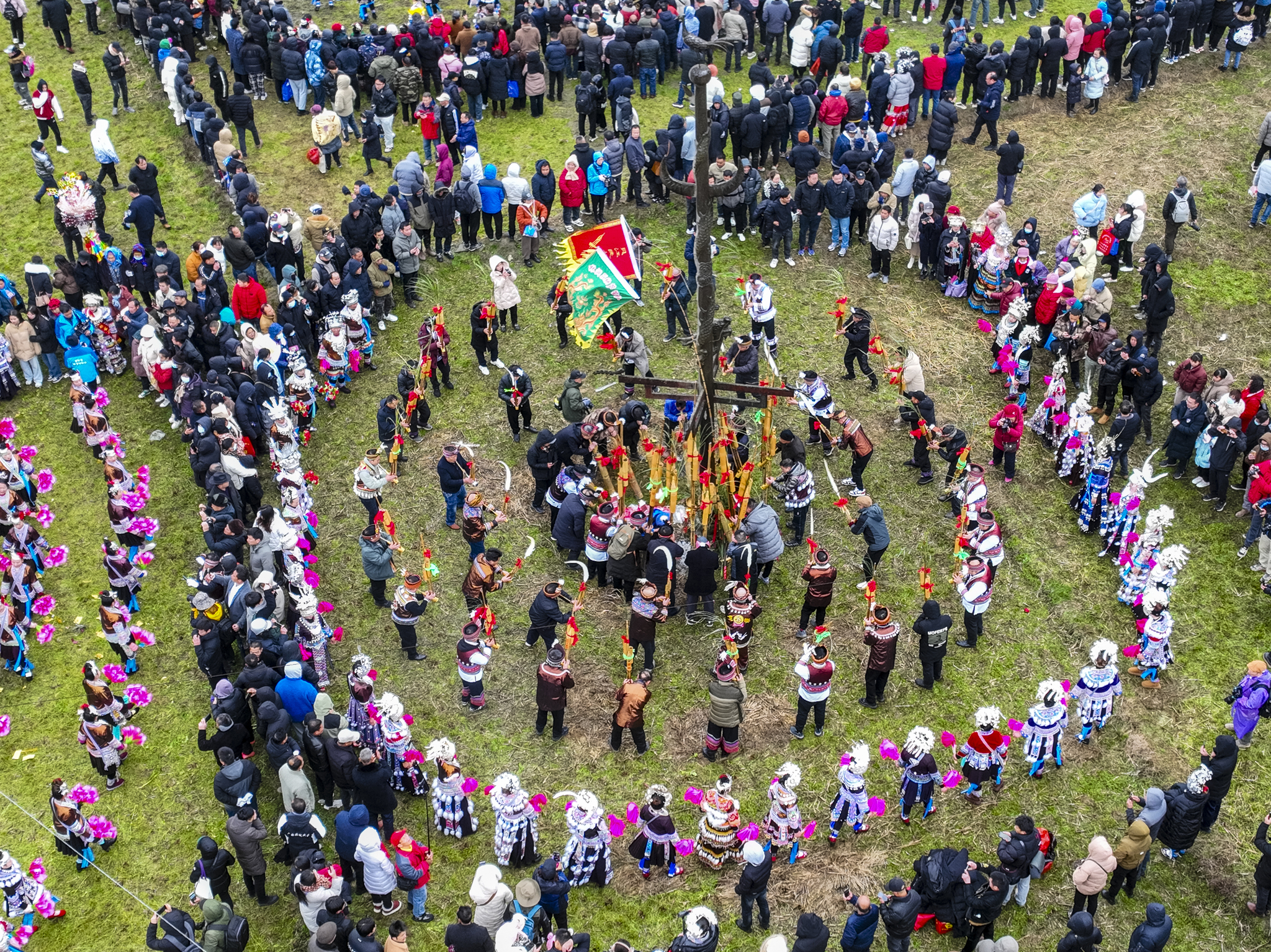 A file photo shows people of the Miao ethnic group taking part in the "Tiaopo" folk festival, or Slope-jumping Festival, in Rongshui Miao Autonomous County of Liuzhou, south China's Guangxi Zhuang Autonomous Region. /CFP