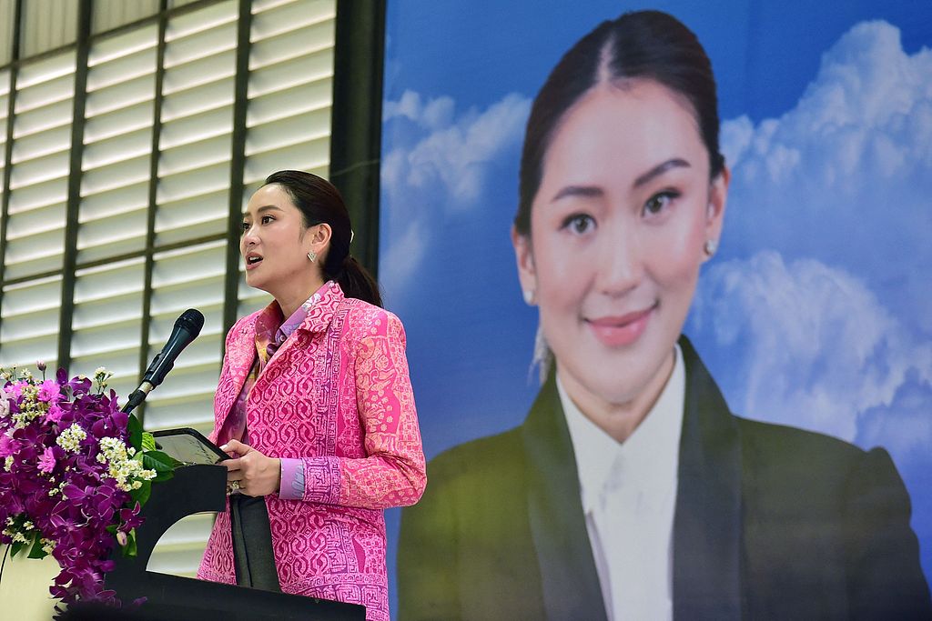 Thai Prime Minister Paetongtarn Shinawatra speaks at an event in the southern Thai province of Narathiwat on January 16, 2025. /CFP
