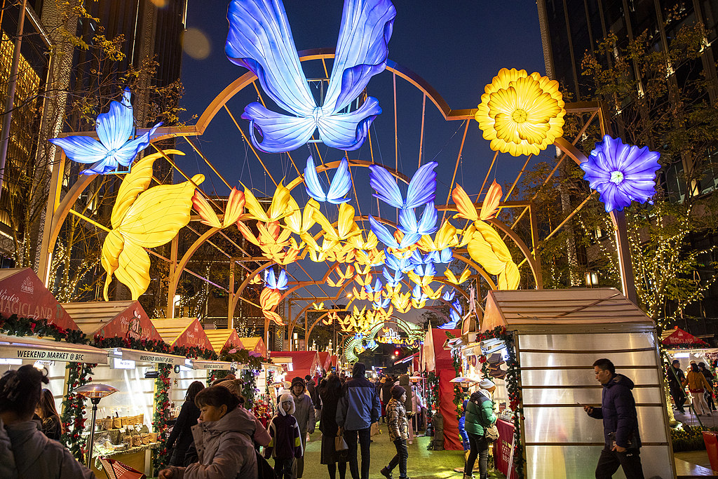 The Fengjing Night Market on the Shanghai Bund bustled with activity as shoppers crowded around on December 28, 2024, in Shanghai, China. /CFP