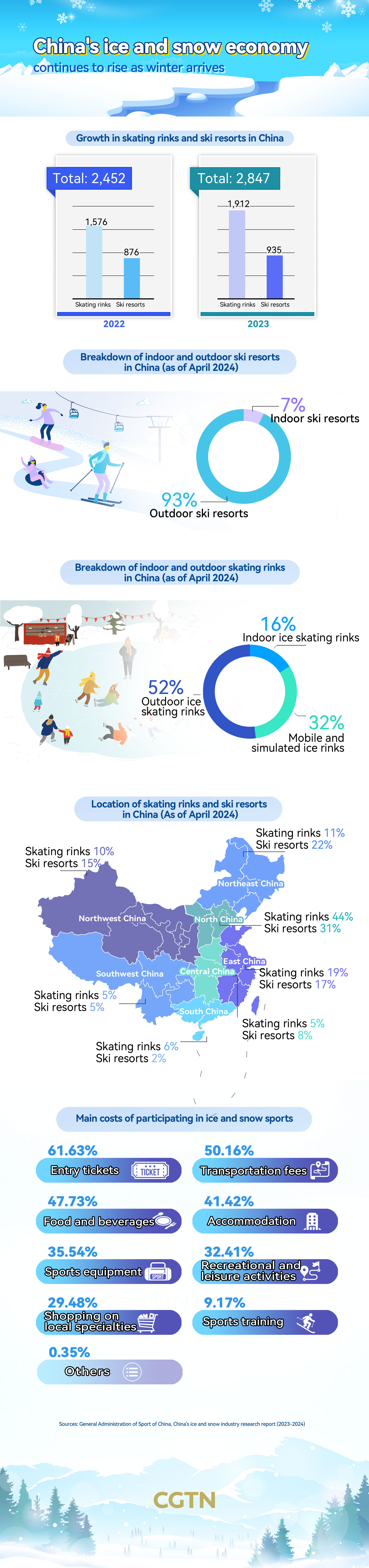 As the cold season sets in, China's winter sports economy soars. During the 2024-2025 winter season, the number of visitors engaging in ice and snow leisure tourism in China is projected to reach 520 million, with tourism revenue anticipated to surpass 630 billion yuan (about $86 billion), according to China's Ice and Snow Tourism Development Report (2025) published on January 5 by the China Tourism Academy.
