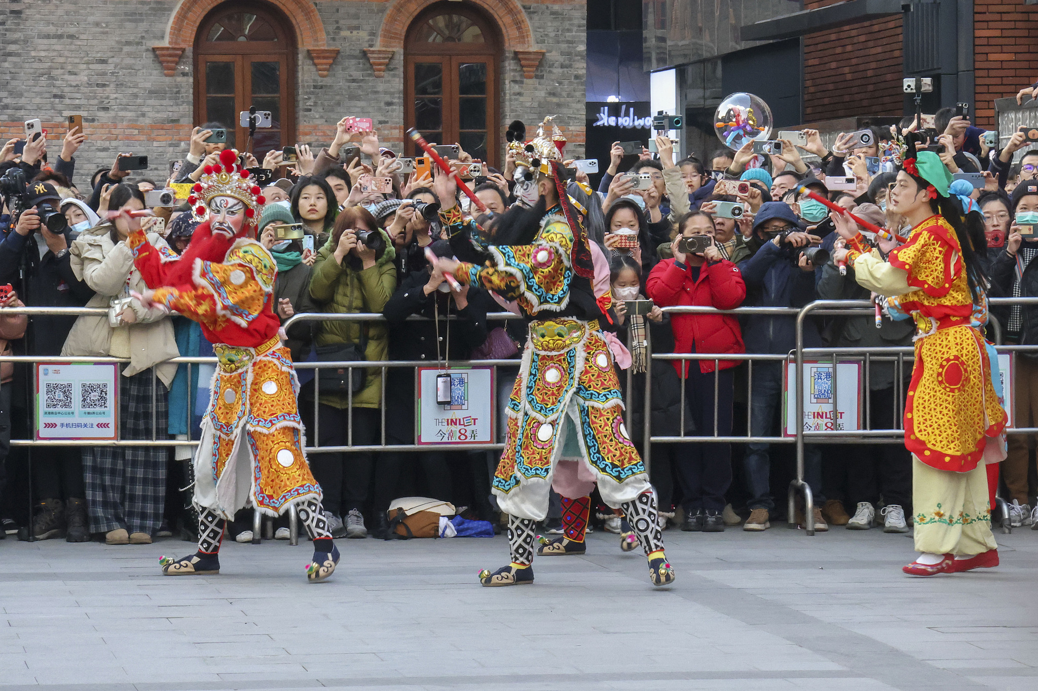 People in Shanghai had the chance to enjoy the charm of Chaoshan Yingge dance up close. To celebrate the upcoming Chinese New Year, a group of 27 folk artists from Chaoshan, Guangdong Province brought the traditional folk performance to the Inlet, a historic block in Shanghai, attracting locals and tourists alike. Mixing elements of martial arts and local operas, Chaoshan Yingge dance performances are said to ward evil, pray for good luck, and bring good fortune to people.