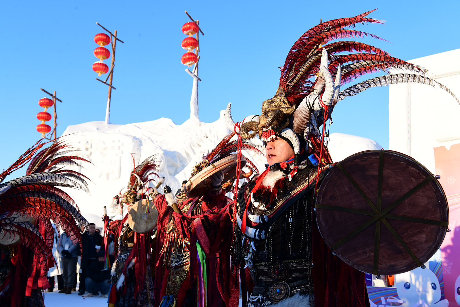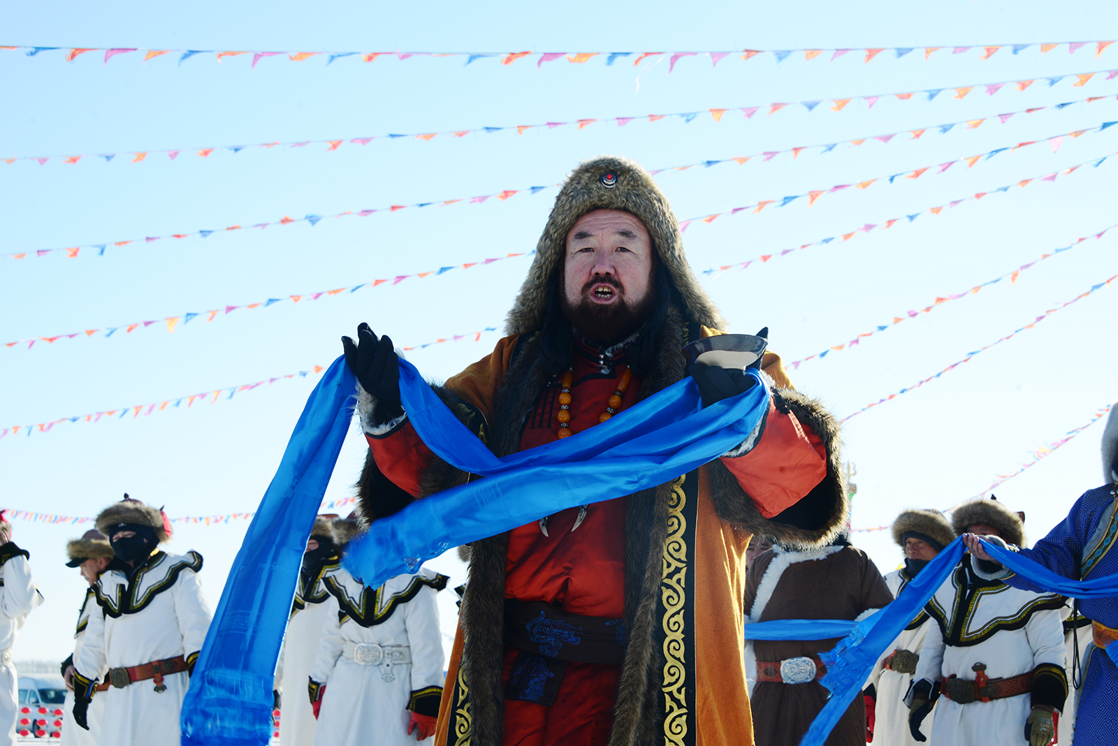 A ceremony is held to honor nature's abundance and wish for a bountiful catch at the beginning of the winter fishing season at Chagan Lake in Songyuan, Jilin Province. /Provided by Jilin Daily