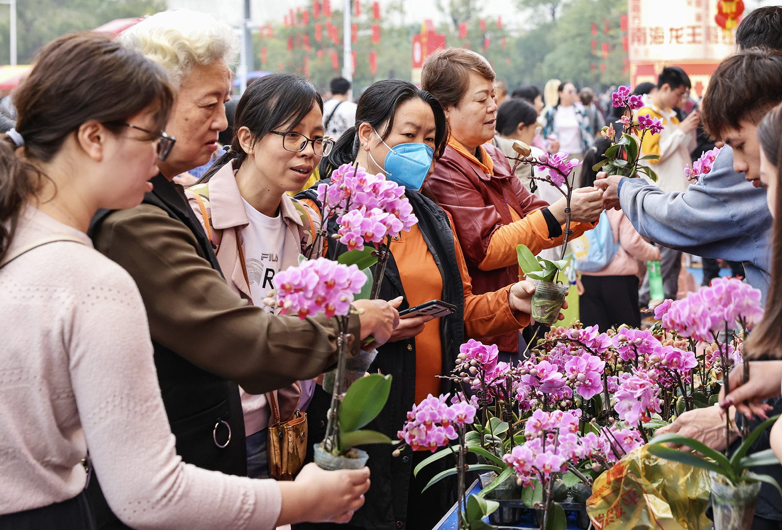 People select flowers at a Spring Festival flower market in Guangzhou, Guangdong Province. /Provided by Yangcheng Evening News