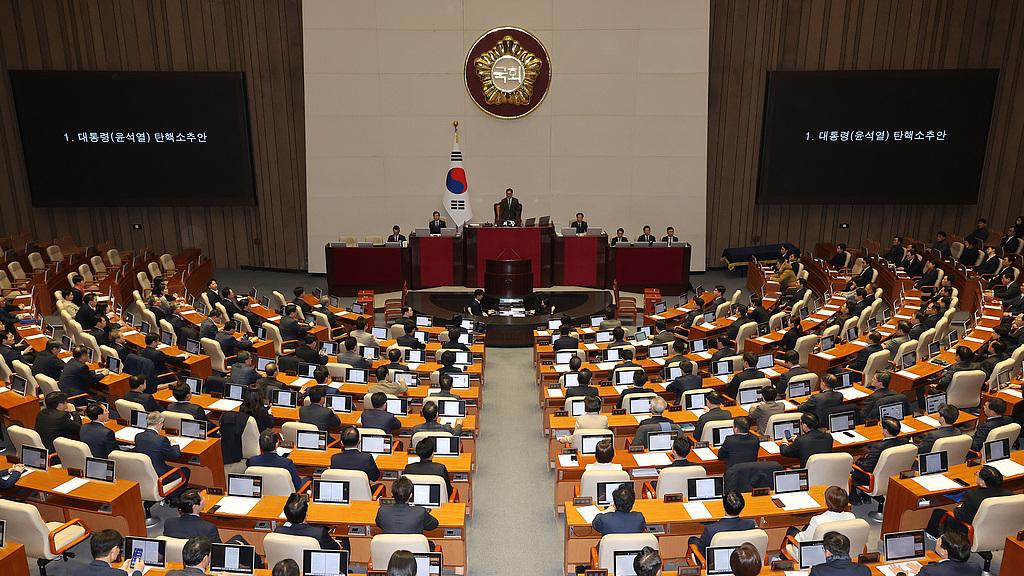 Lawmakers attend a plenary session ahead of a vote on a second impeachment motion against President Yoon Suk Yeol at the National Assembly in Seoul, South Korea, on Saturday, Dec. 14, 2024. Yoon faces a second impeachment vote over his short-lived attempt to impose martial law, with the result likely to either throw the nation into months of caretaker rule or give the embattled leader a further political lifeline.[Photo: VCG]