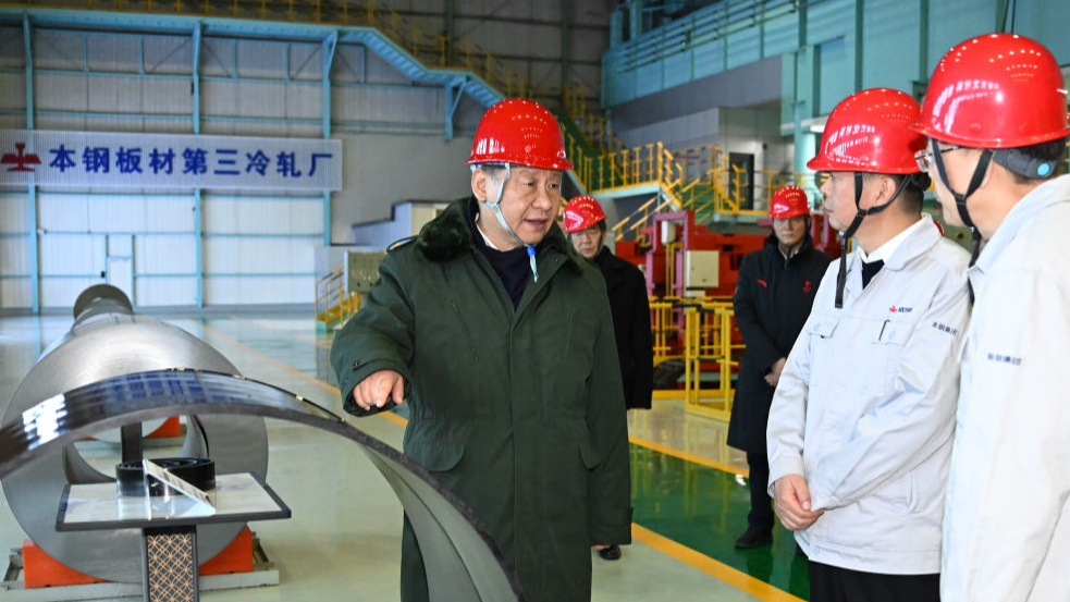 President Xi Jinping visits a cold rolling mill of Bensteel Group, Benxi City, northeast China's Liaoning Province, January 23, 2025. /Xinhua