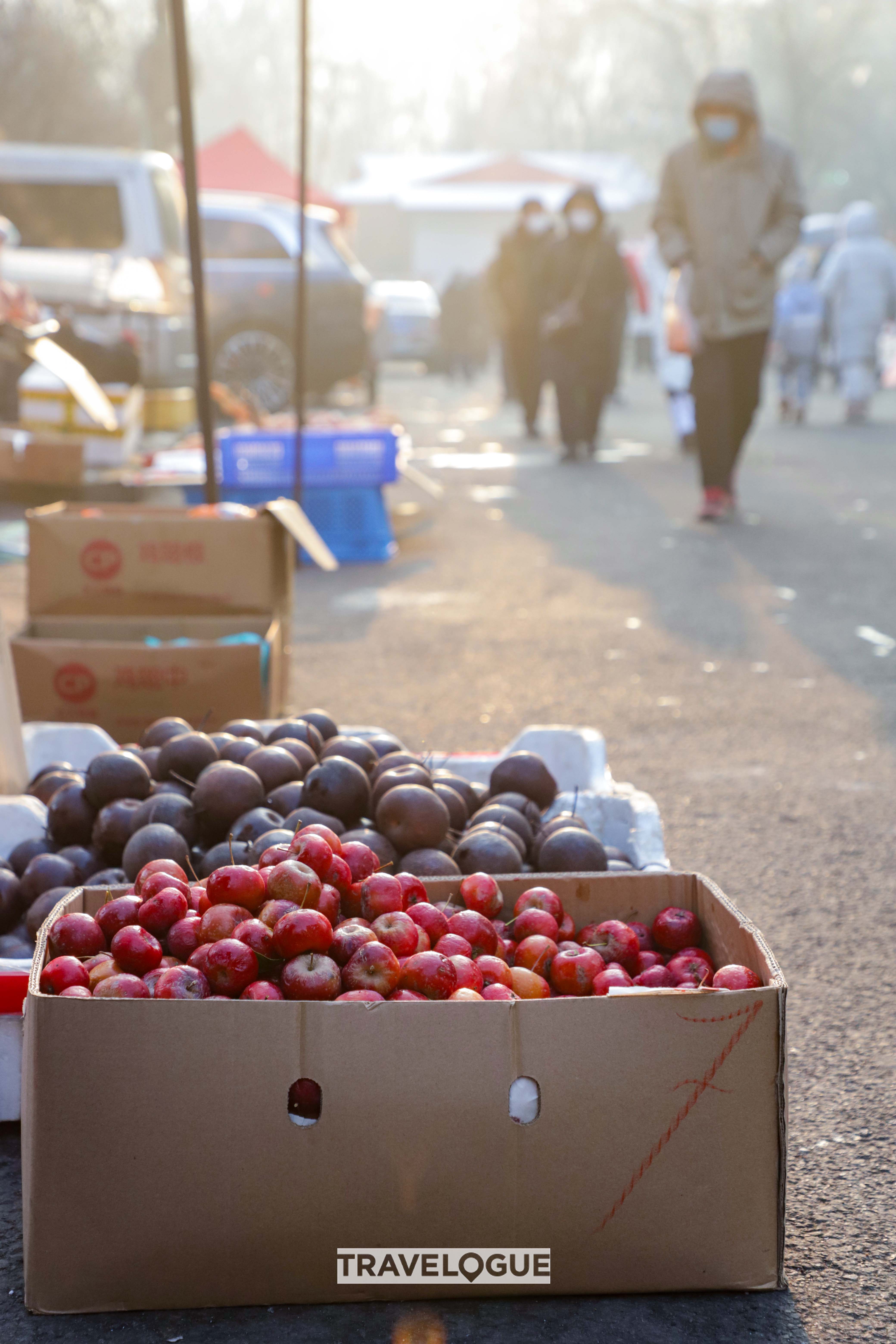 Frozen fruit is a popular winter treat in Harbin, Heilongjiang Province. /CGTN