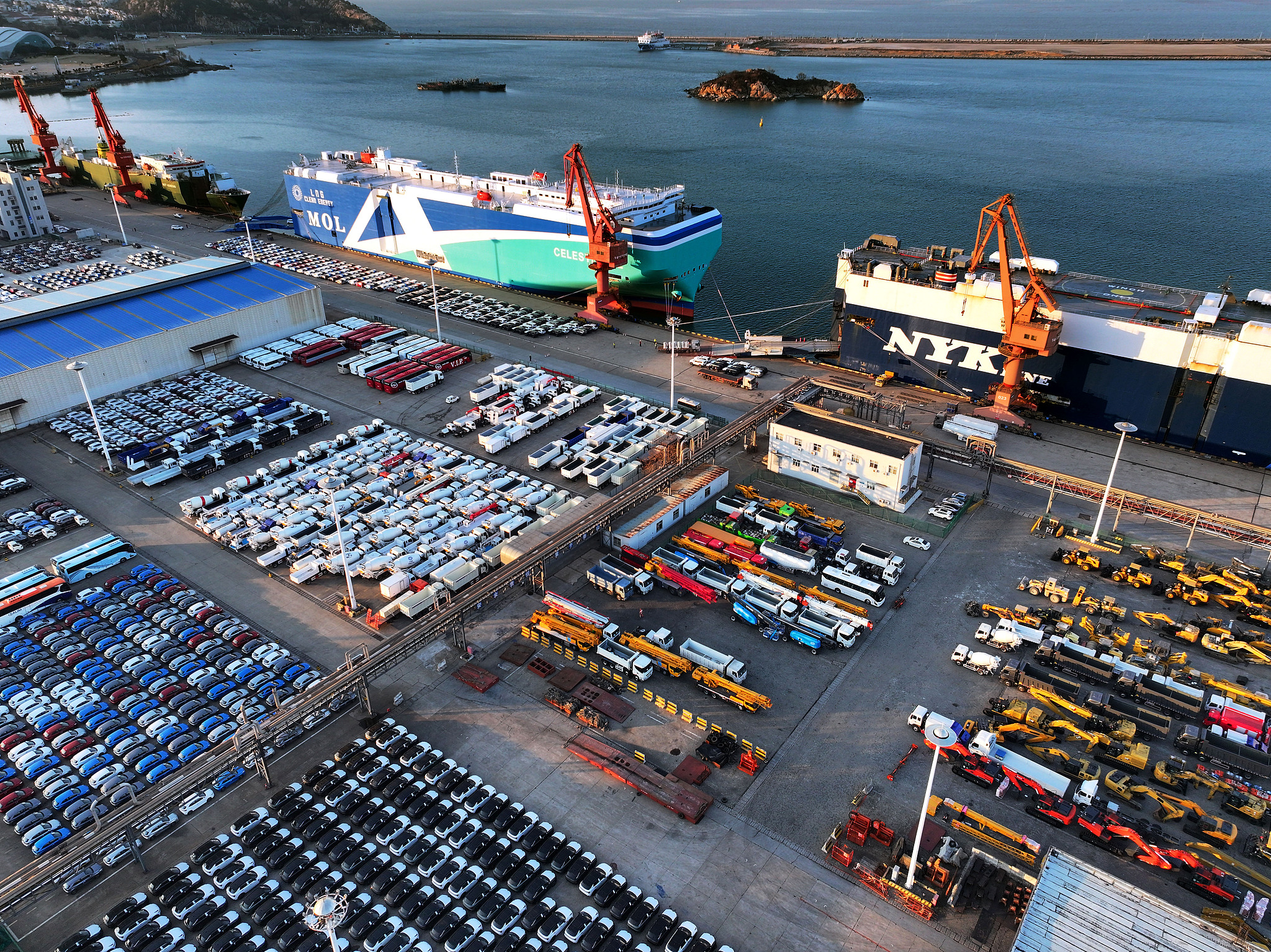 Cars awaiting export at a port in Lianyungang, Jiangsu Province, eastern China, January 28, 2025. /VCG