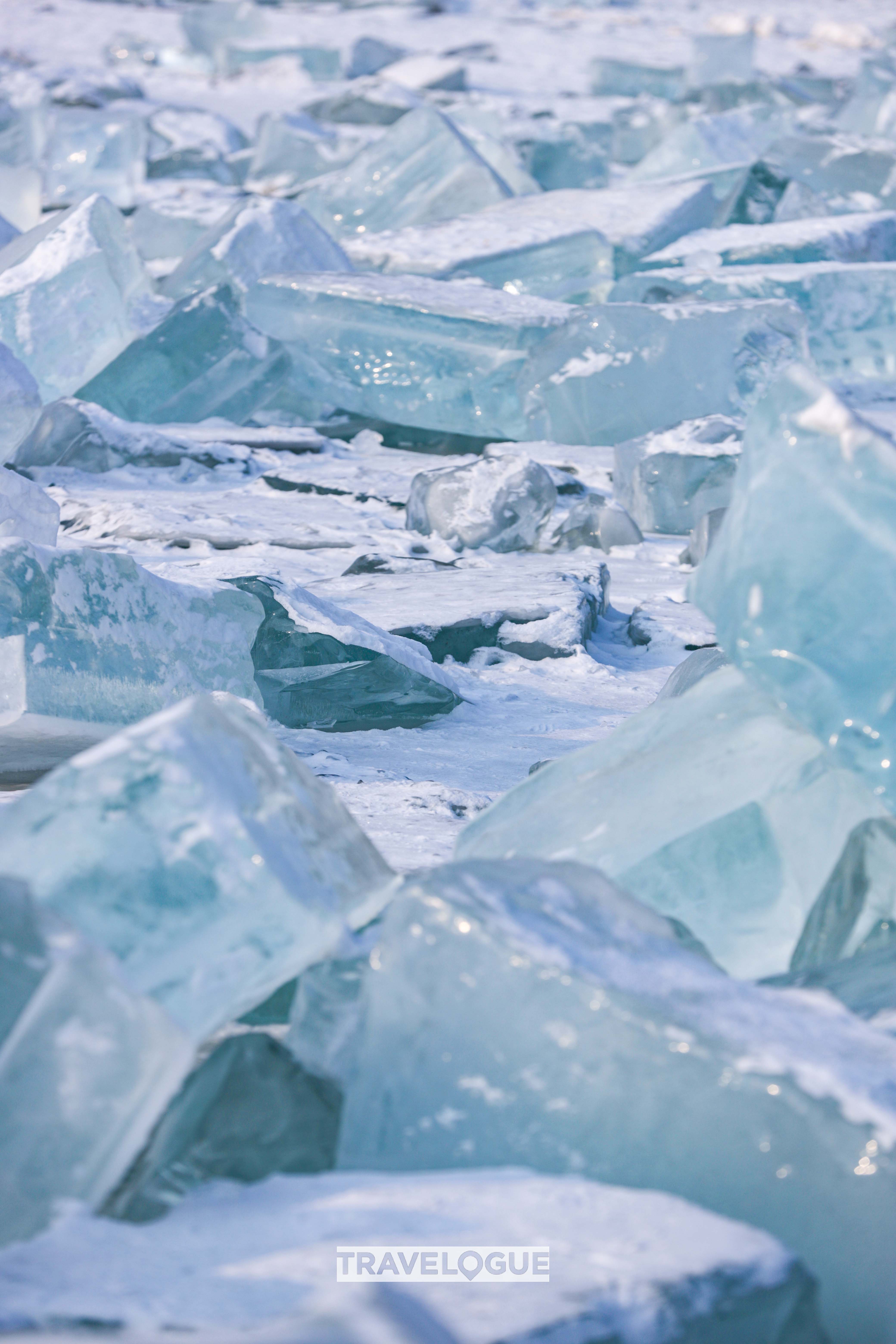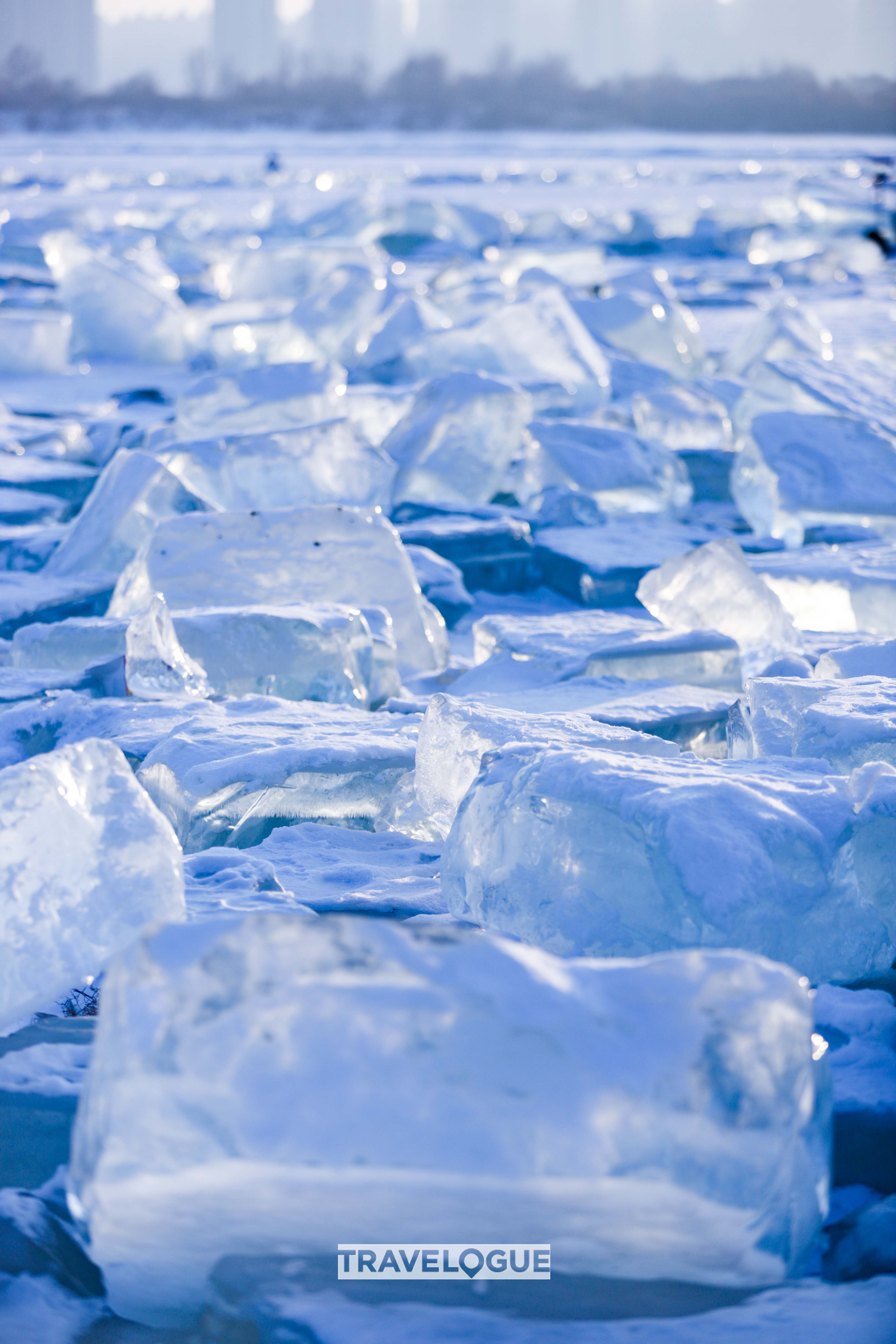 Every winter when the Songhua River freezes over, workers in the city of Harbin will cut blocks of ice to make ice sculptures. The imperfect pieces are left on the riverbank, forming a dazzling frozen landscape the locals have dubbed the "Diamond Sea."