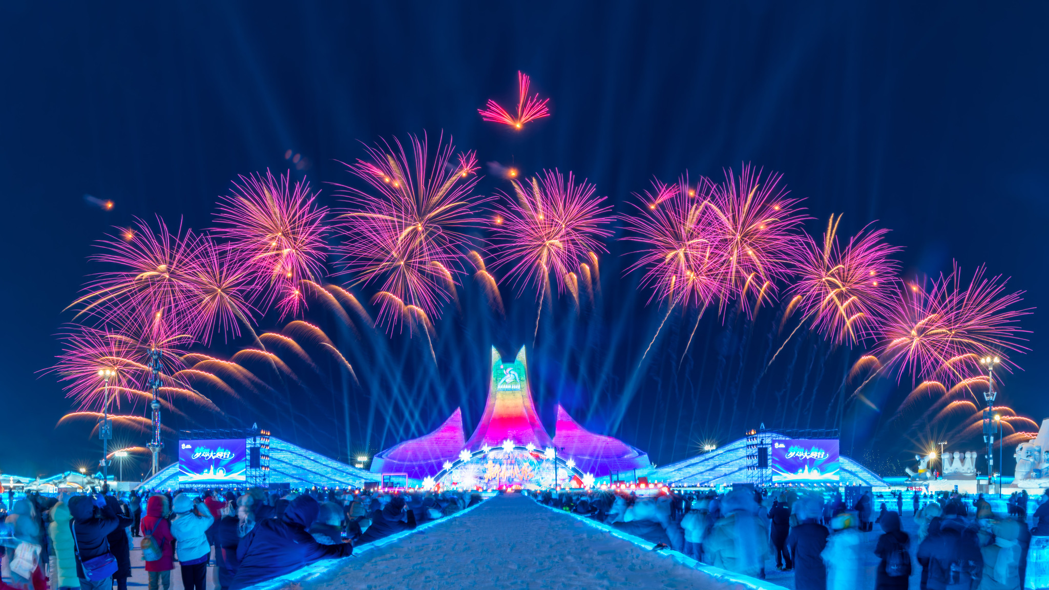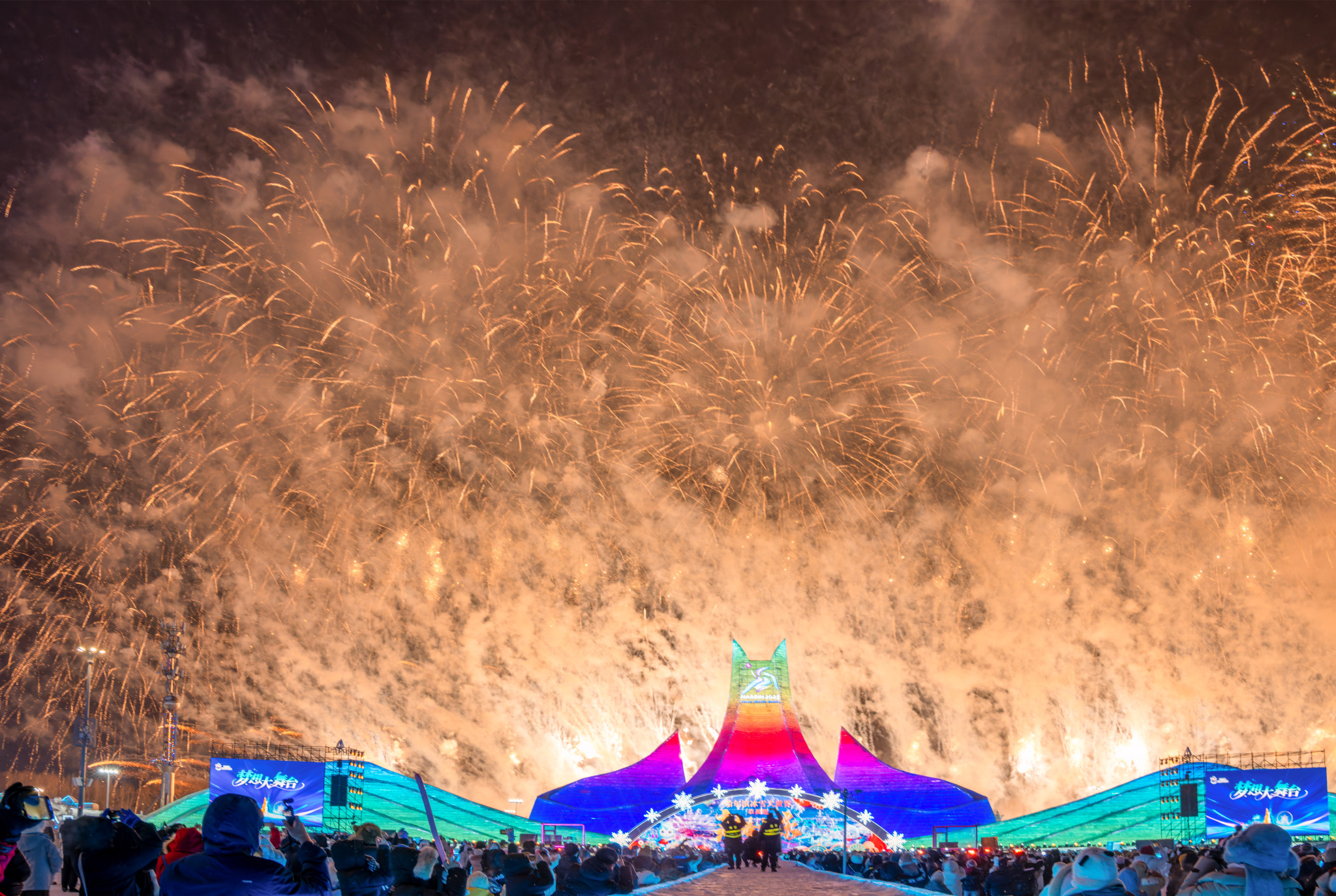 Brilliant fireworks illuminate the skies over Harbin Ice and Snow World in Harbin, northeast China's Heilongjiang Province, on the evening of February 7, 2025, marking the grand opening of the 9th Asian Winter Games. /VCG