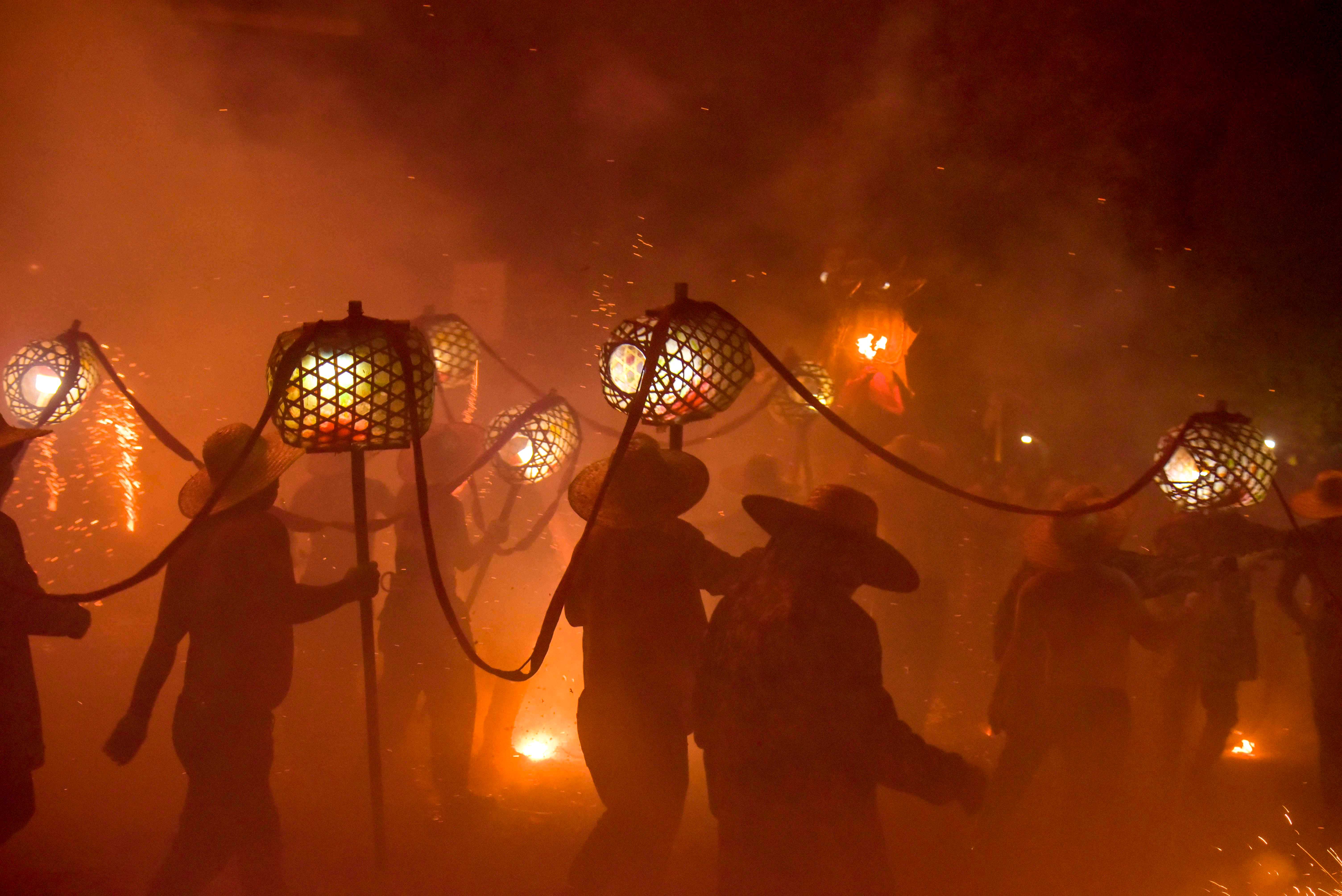 Performers participate in the "Dragon Bombing" festival in Tongren, Guizhou Province on February 6, 2025. /Photo provided to CGTN